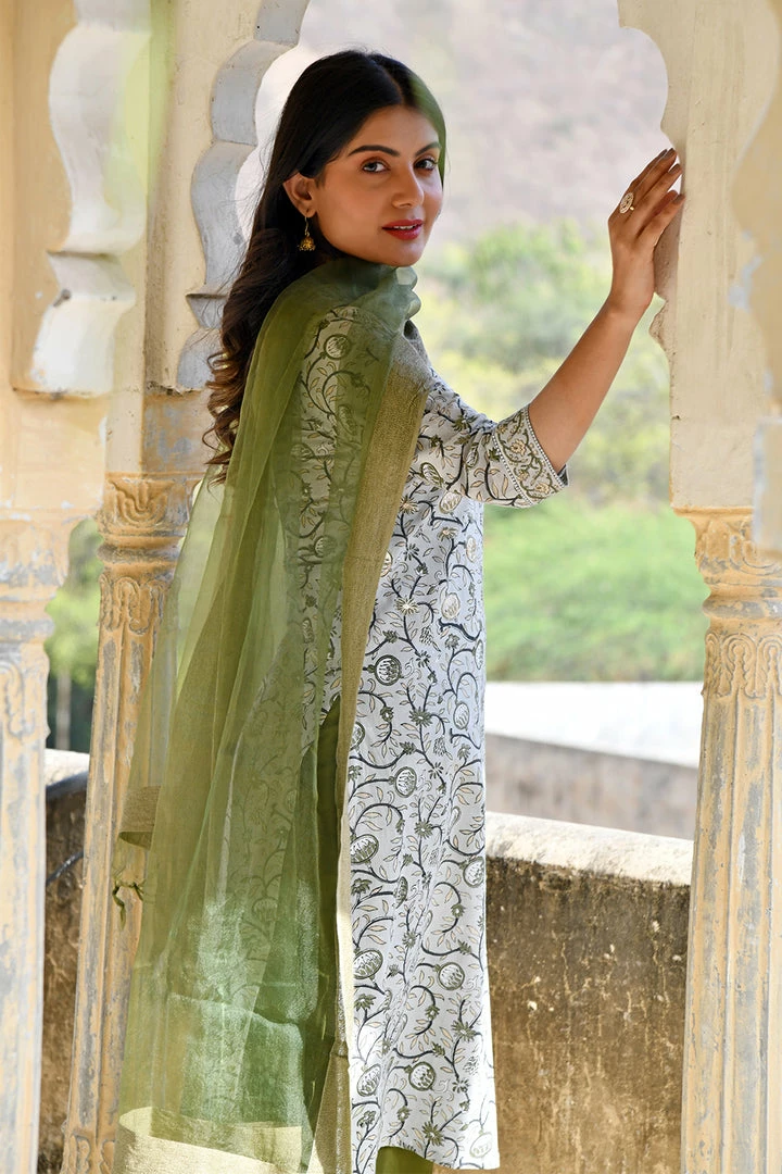 Material:  KURTA – Cotton, PANT – Cotton, DUPATTA – Organza