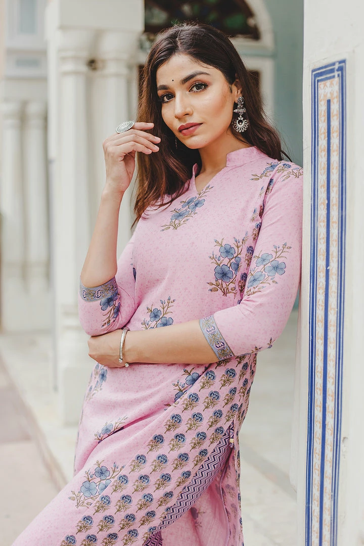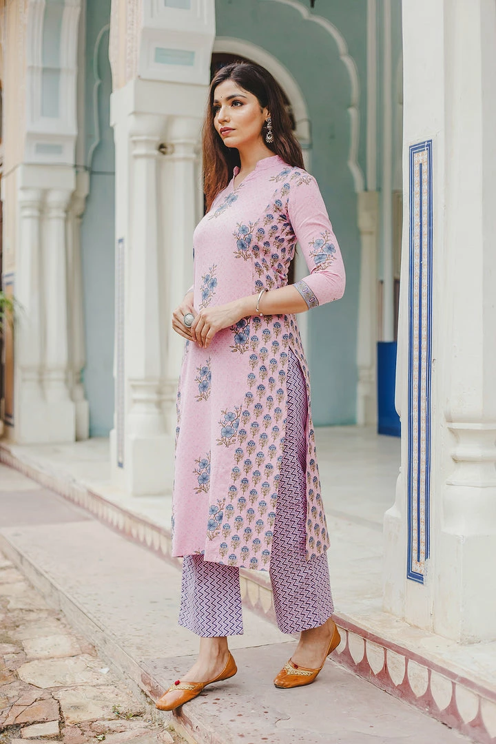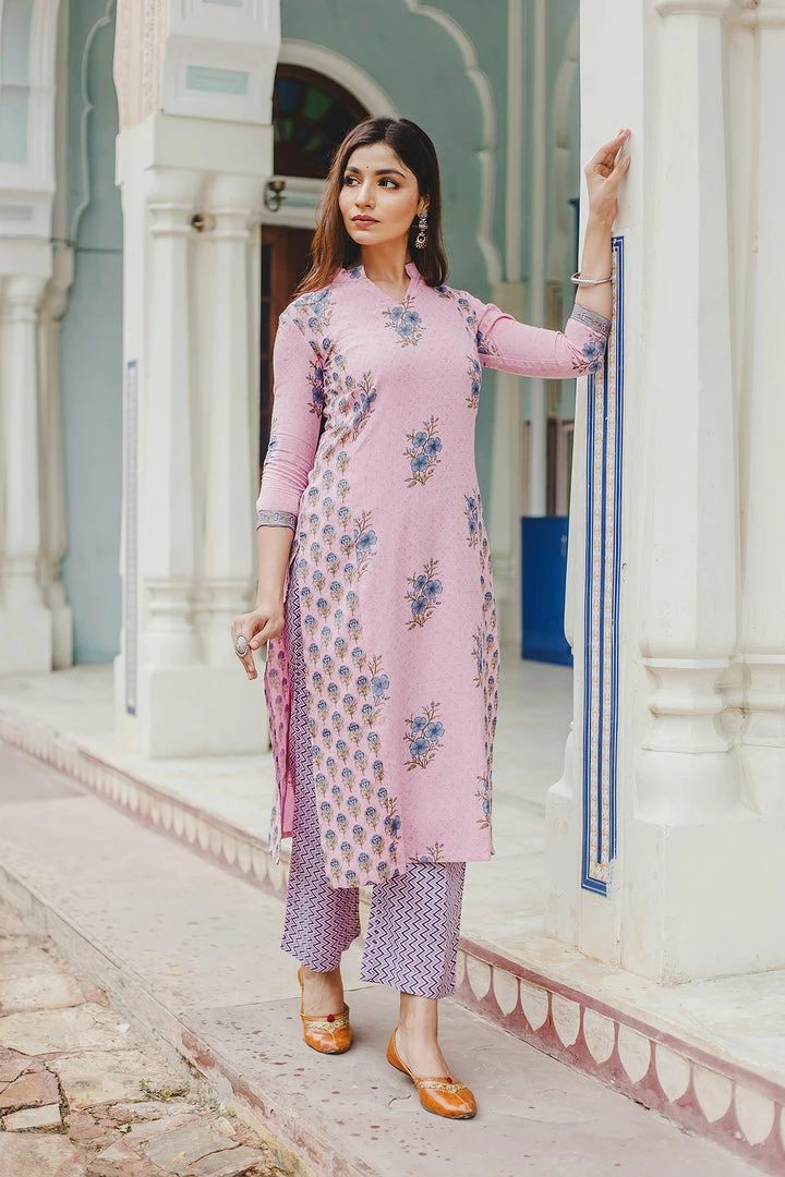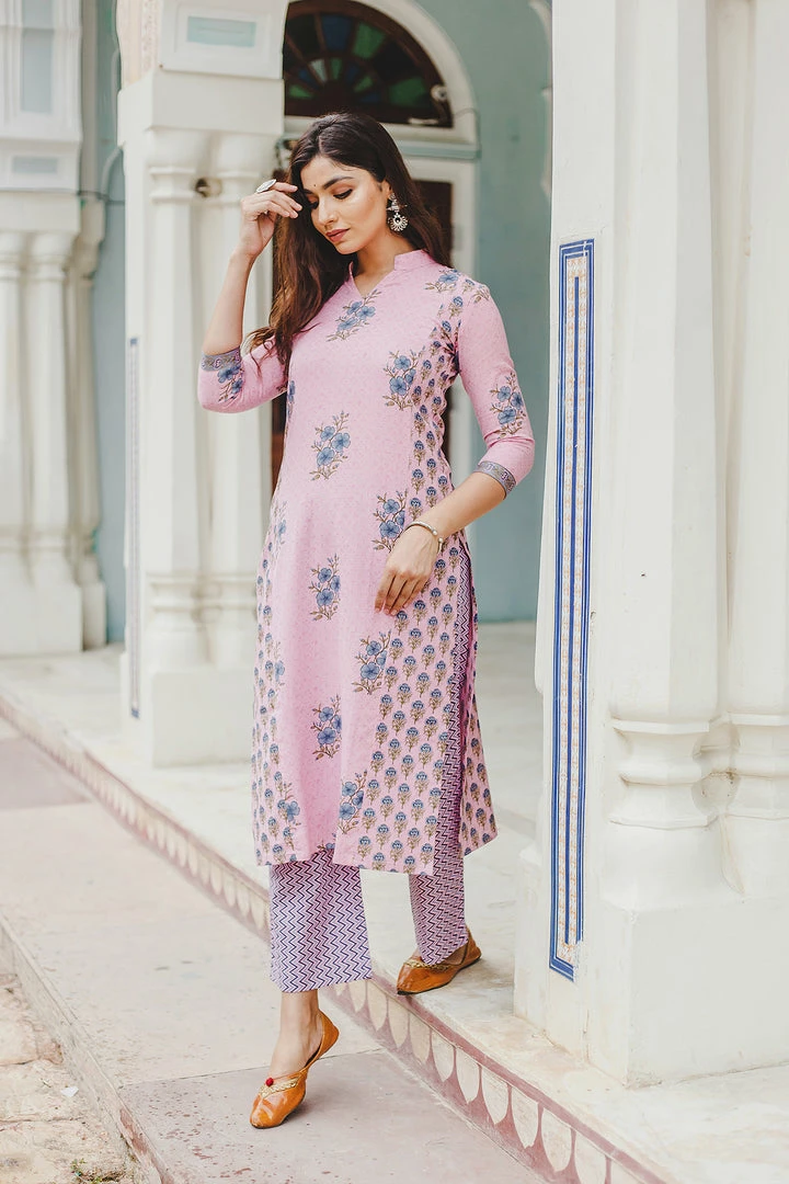This set is Handblock printed in mughal buta with zig zag print.