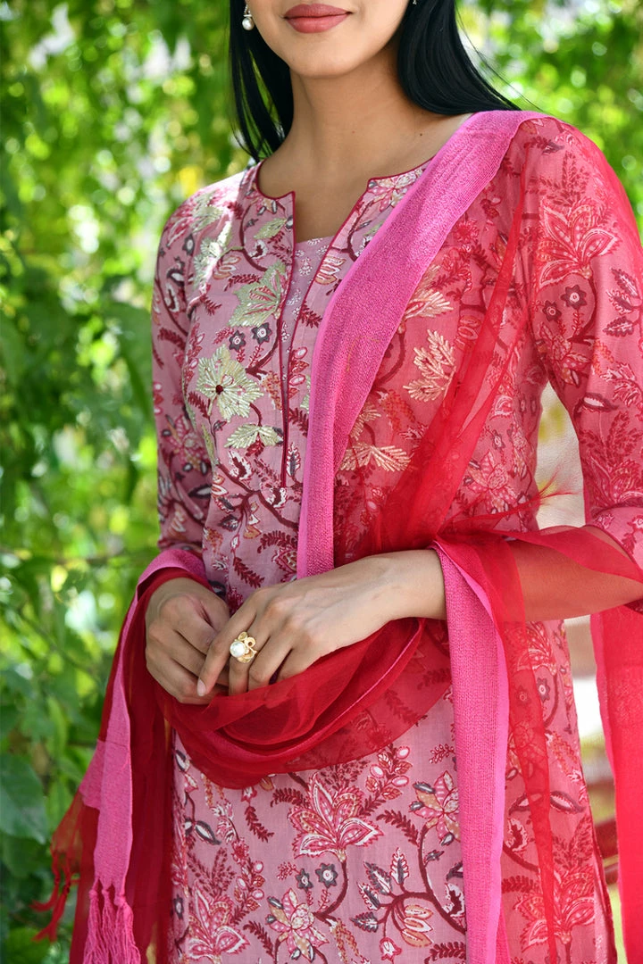 Material: KURTA – Cotton, PANT – Cotton, DUPATTA – Organza