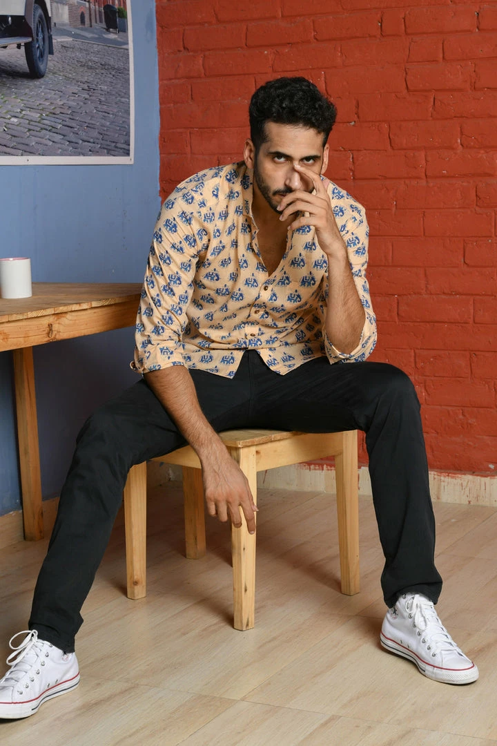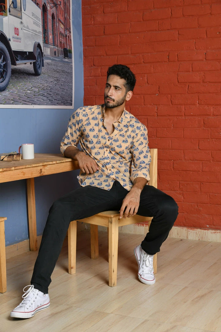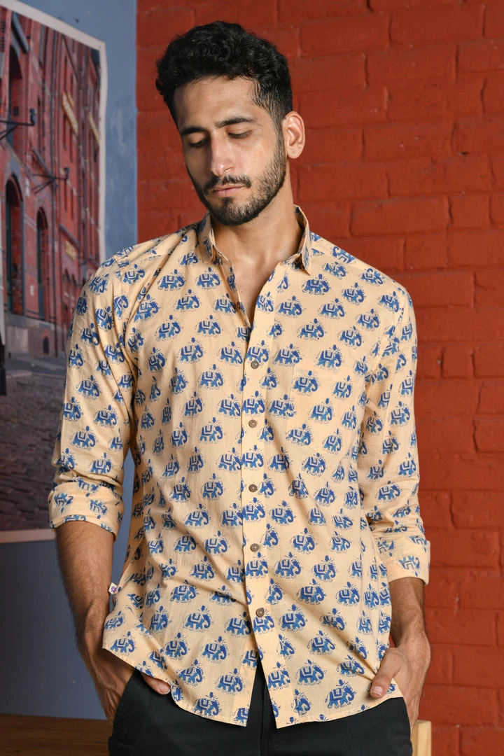 Description:Â Look handsome and stay comfortable in this full-sleeved shirt featured with regular spread collar. Fashioned from cotton fabric, this shirt comes with intricate prints all over.
