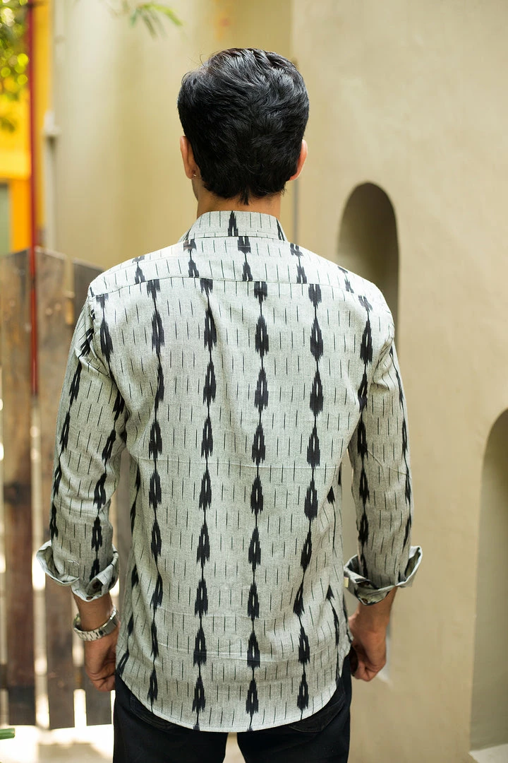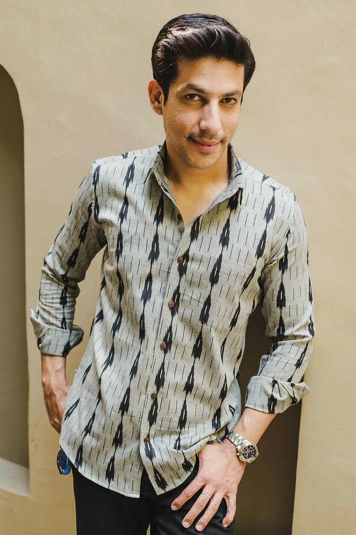 Look handsome and stay comfortable in this full-sleeved shirt featured with regular spread collar. Fashioned from cotton handloom fabric, this shirt comes with intricate woven ikat all over.