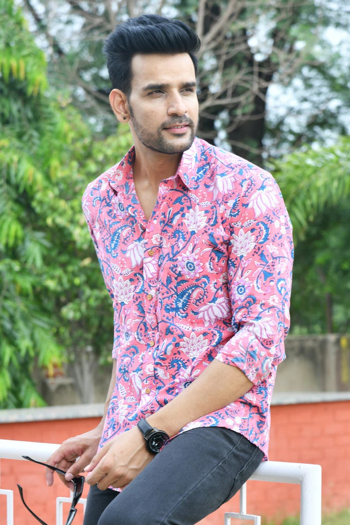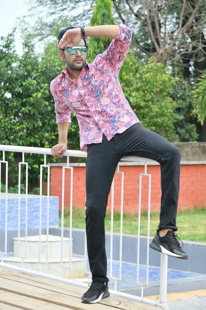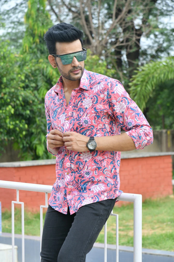 Description:Â Look handsome and stay comfortable in this full-sleeved shirt featured with regular spread collar. Fashioned from cotton fabric, this shirt comes with intricate floral print all over.
