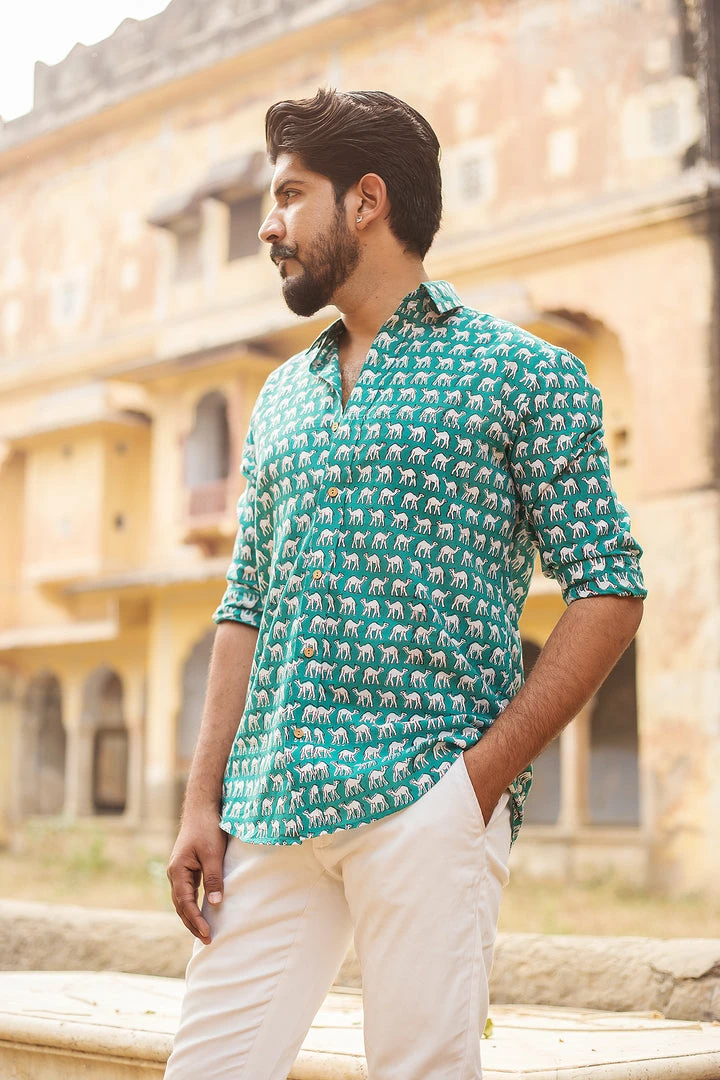 Look handsome and stay comfortable in this full-sleeved shirt featured with regular spread collar. Fashioned from cotton fabric, this shirt comes with intricate camel print all over.Â