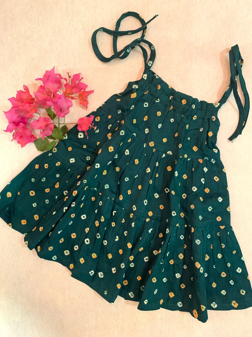 This cute bandhini dress is a layered flare dress with tie up, easy to fit. Â