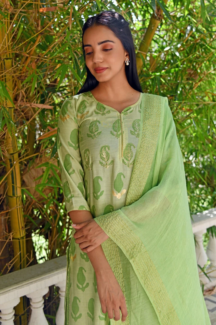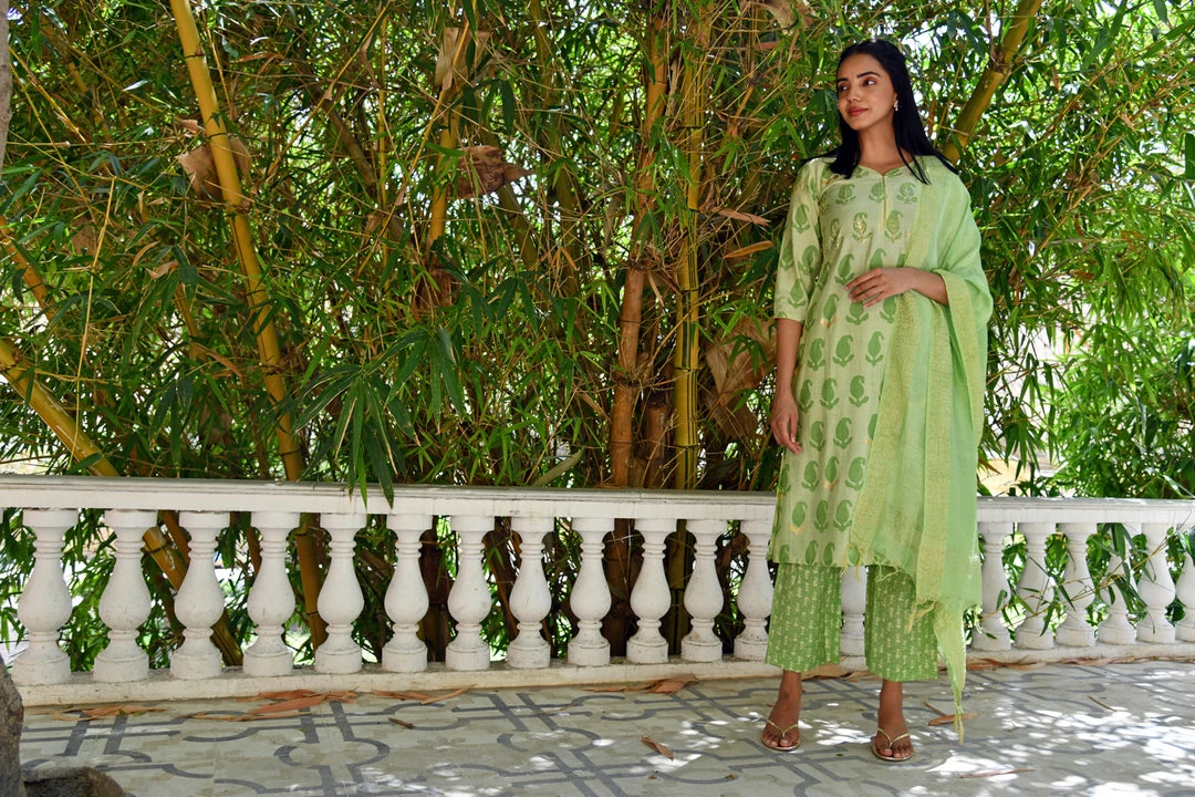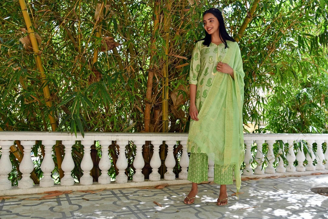 Material:  KURTA – Muslin Cotton, PANT – Muslin Cotton, DUPATTA – Muslin Cotton, LINING INSIDE – Yes