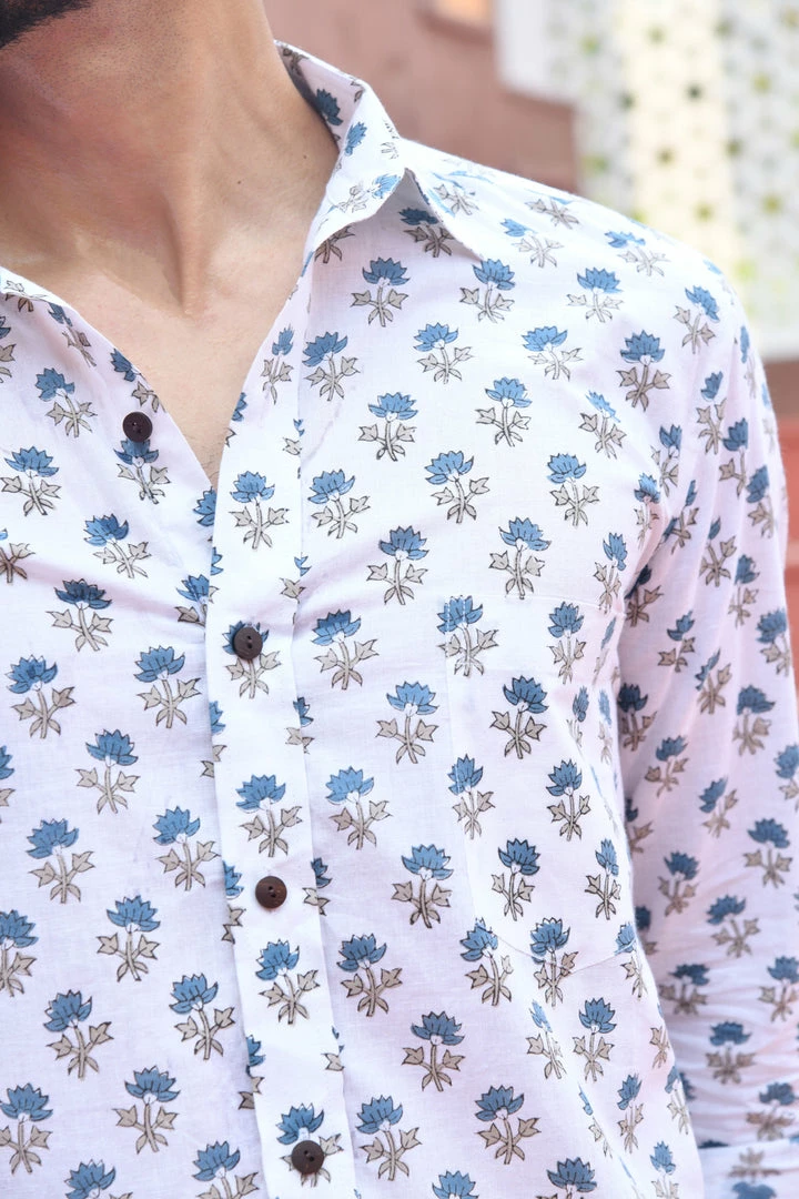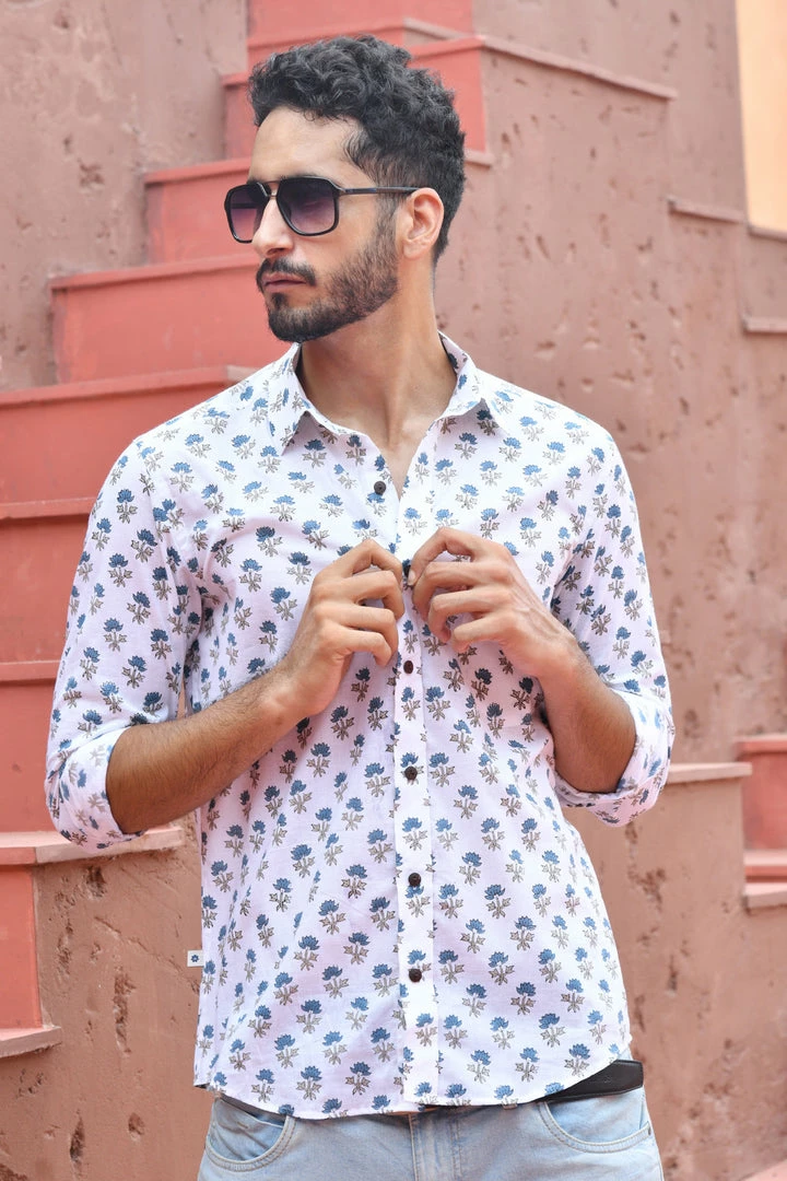 Description:Â Look handsome and stay comfortable in this full-sleeved shirt featured with regular spread collar. Fashioned from cotton fabric, this shirt comes with intricate buti print all over.
