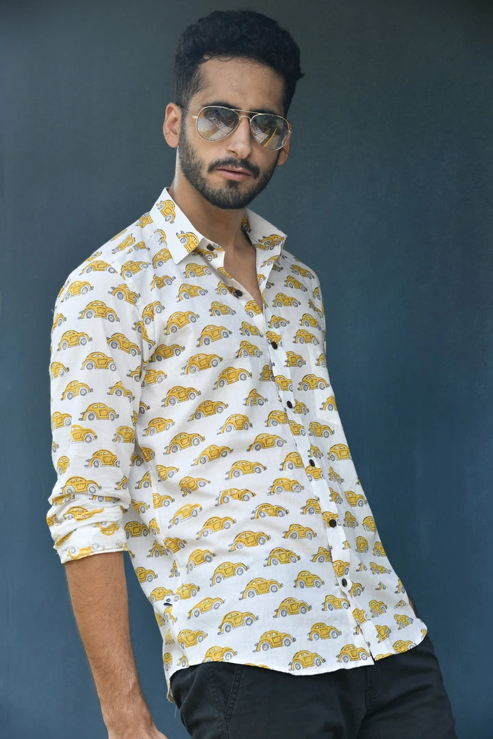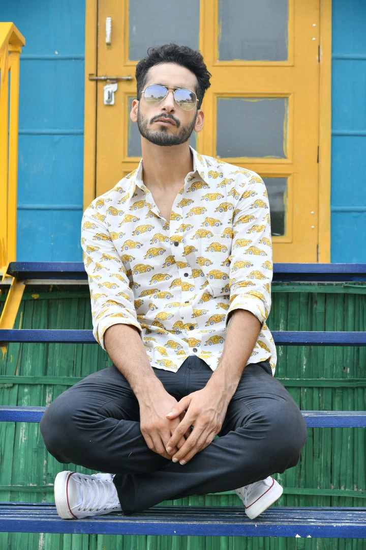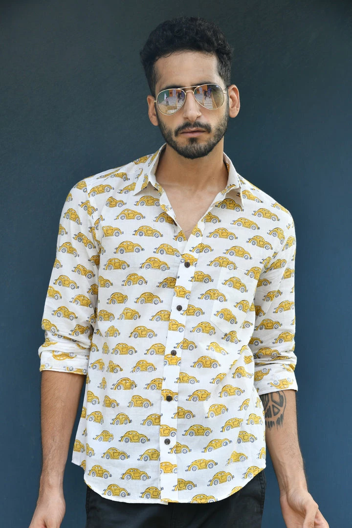 Description:Â Look handsome and stay comfortable in this full-sleeved shirt featured with regular spread collar. Fashioned from cotton fabric, this shirt comes with intricate floral print all over.