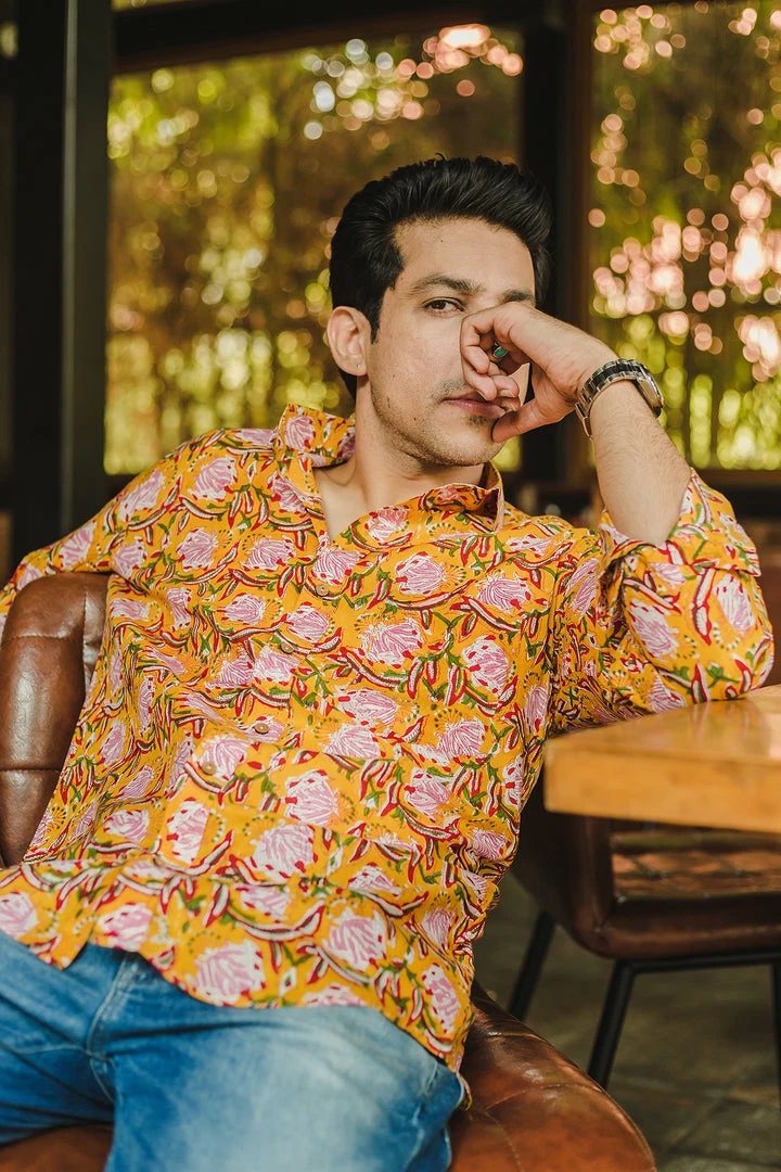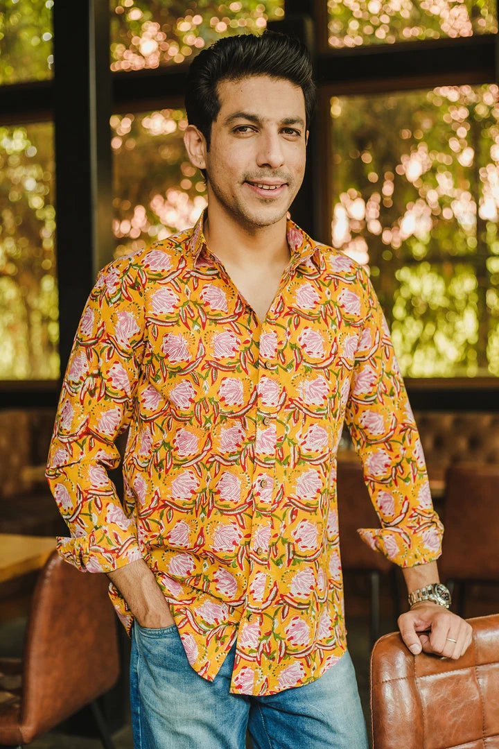Look handsome and stay comfortable in this full-sleeved shirt featured with regular spread collar. Fashioned from cotton fabric, this shirt comes with intricate floral print all over.
