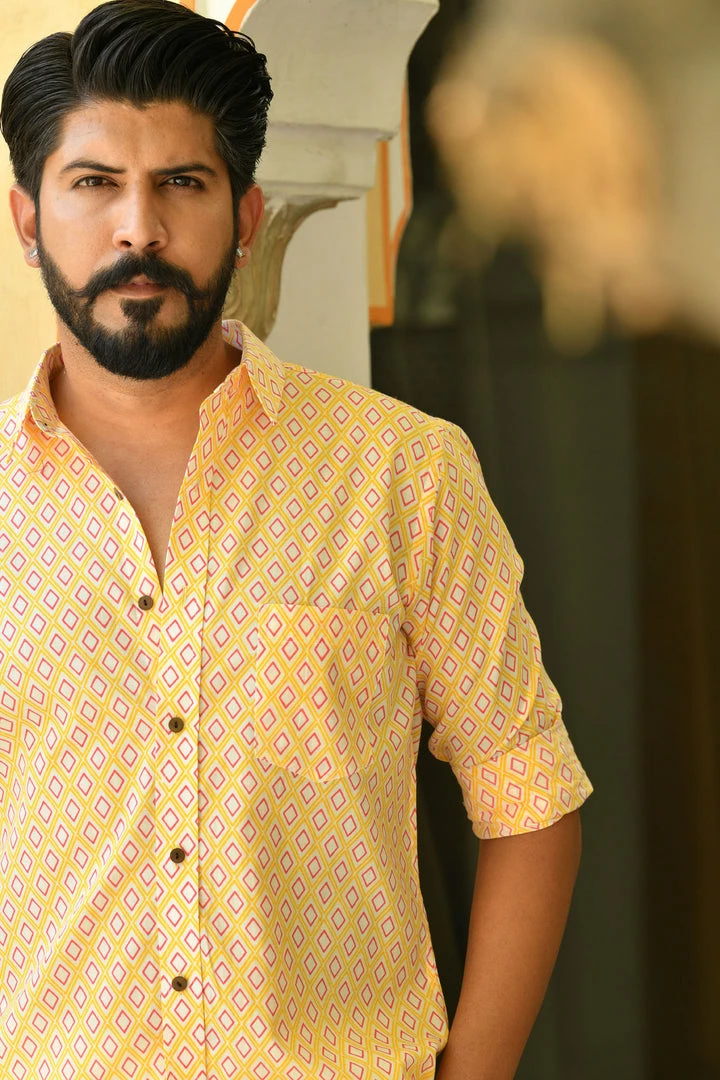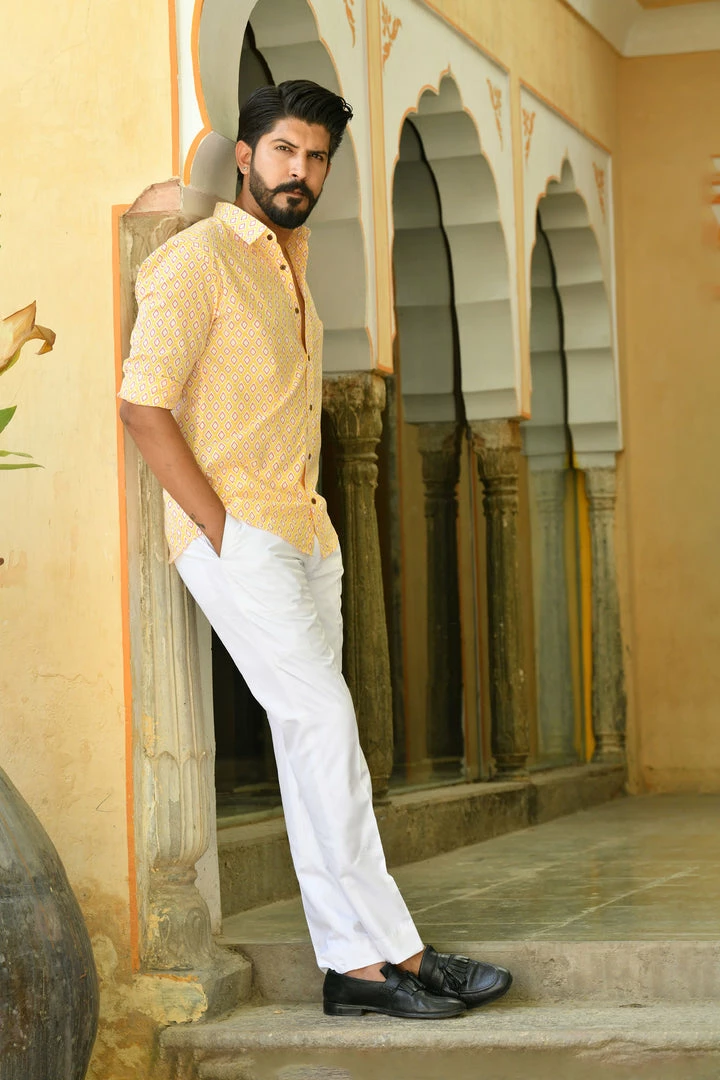 Look handsome and stay comfortable in this full-sleeved shirt featured with regular spread collar. Fashioned from cotton fabric, this shirt comes with intricate buti print all over.