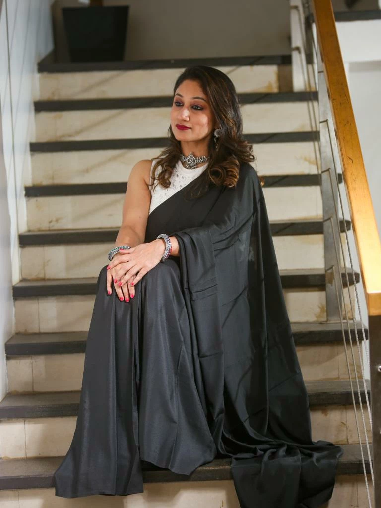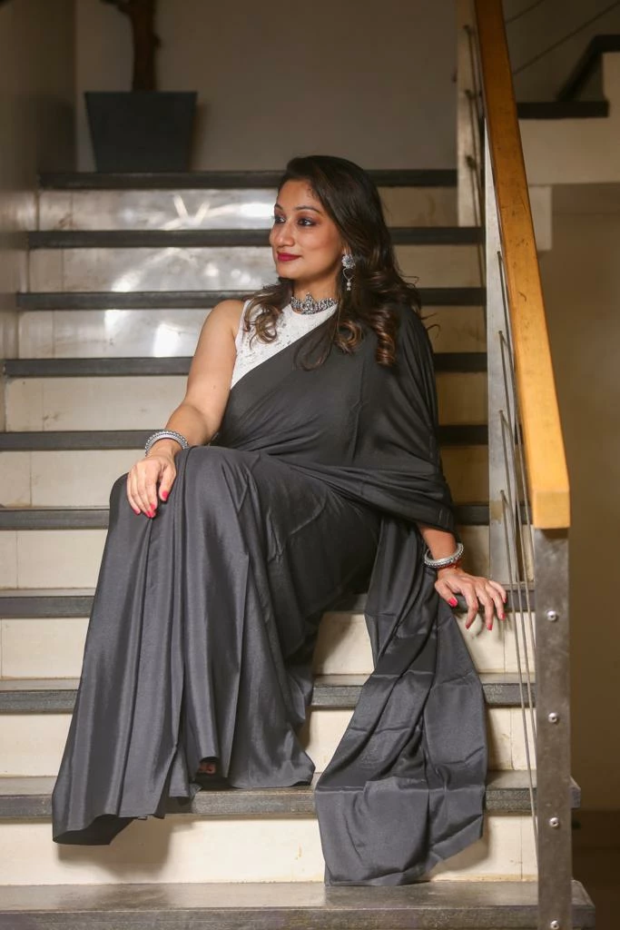 Soft and flowy plain crepe silk saree. The fabric is extremely easy to drape. It is non transparent and can be easily worn as single pleat.
