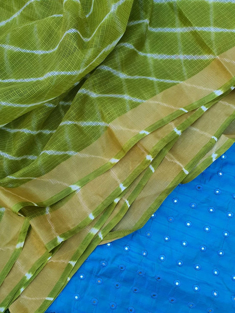 This collection is for all those who love vibrant colours and combinations! Our Kota sarees are directly sourced from the weavers in Kota, Rajasthan. Kota sarees are extremely lightweight and very easy to drape. This weave has tiny square like patterns known as ‘khats’ all over the saree. This particular collection of Kota sarees has leheriya designs on them. This is achieved by a tie and dye technique. These sarees are hand dyed to perfection by highly skilled dyers, using vibrant colours.