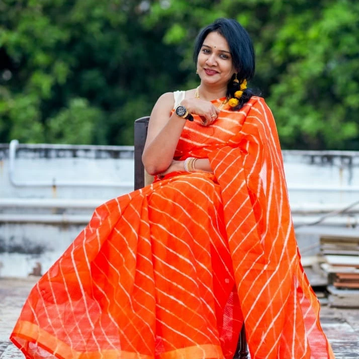 Kota sarees are extremely lightweight and very easy to drape. This weave has tiny square like patterns known as ‘khats’ all over the saree. This particular collection of Kota sarees has leheriya designs on them. This is achieved by a tie and dye technique. These sarees are hand dyed to perfection by highly skilled dyers, using vibrant colours.