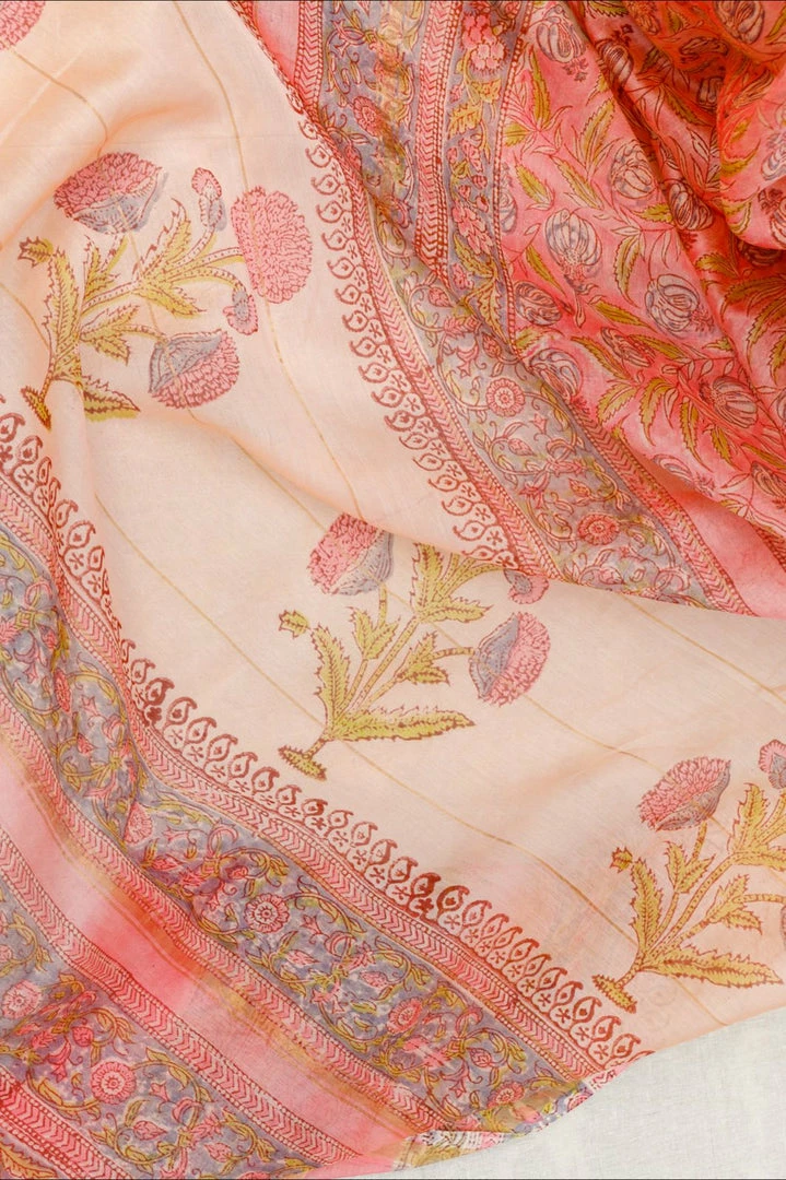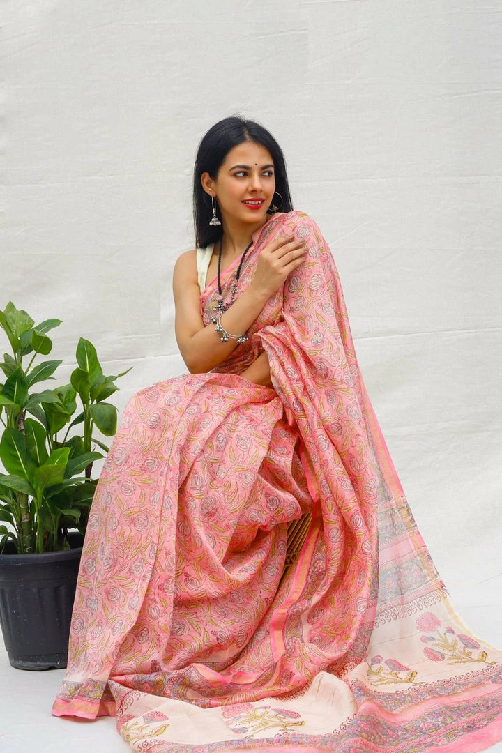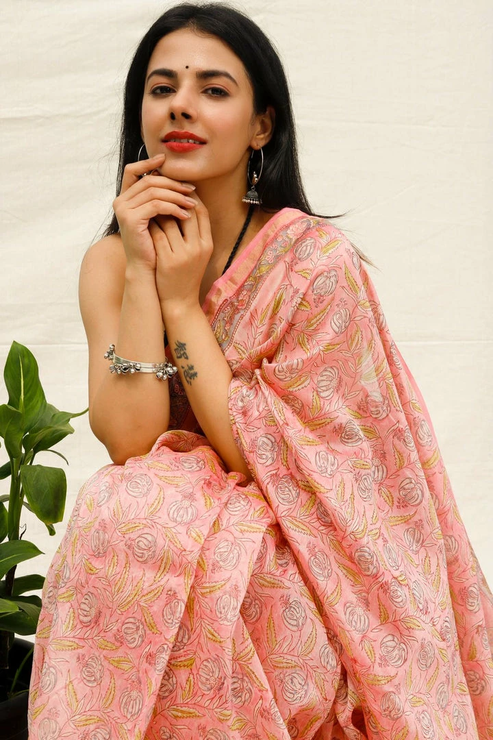 Experience the richness of handwoven chanderi silk saree with intricate hand block prints also called ‘Bagru’ prints directly sourced from artisans in Jaipur.Â