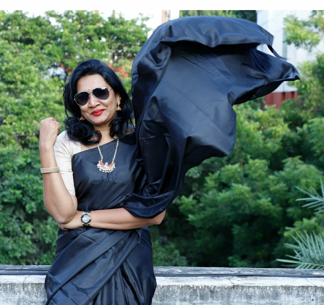 Plain black paper silk saree.. extremely lightweight, soft and very easy to drape.