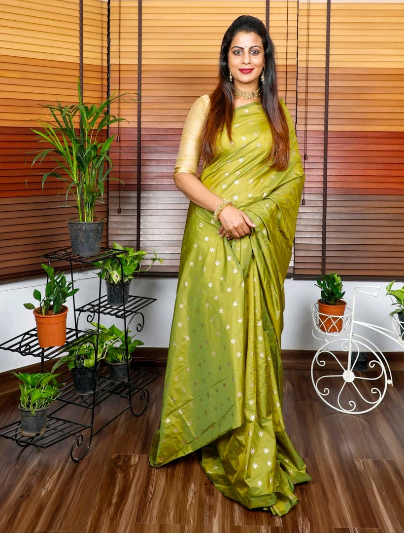 This is a hand block printed Rayon Silk Saree. We have chosen gold and silver hand block prints for this collection.