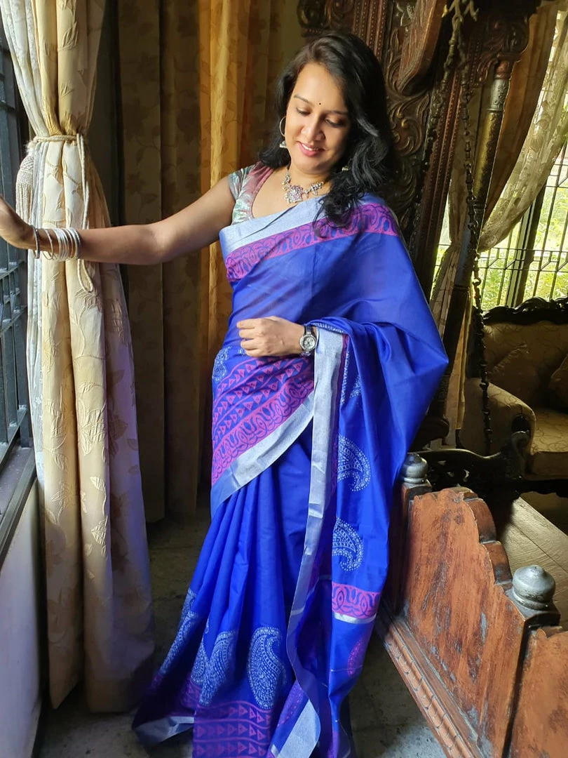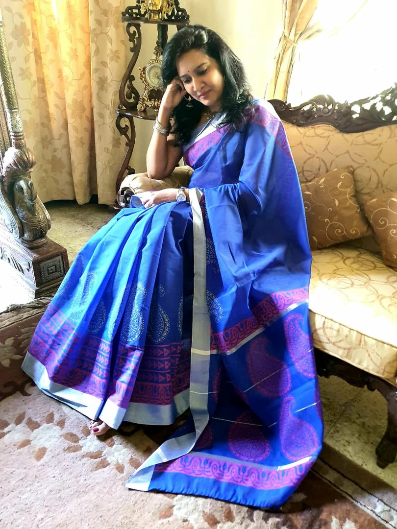 Every saree in this collection has been designed by choosing individual blocks and different colour combinations and finally brought to life by a team of skillful artisans who do these hand block prints on our sarees.