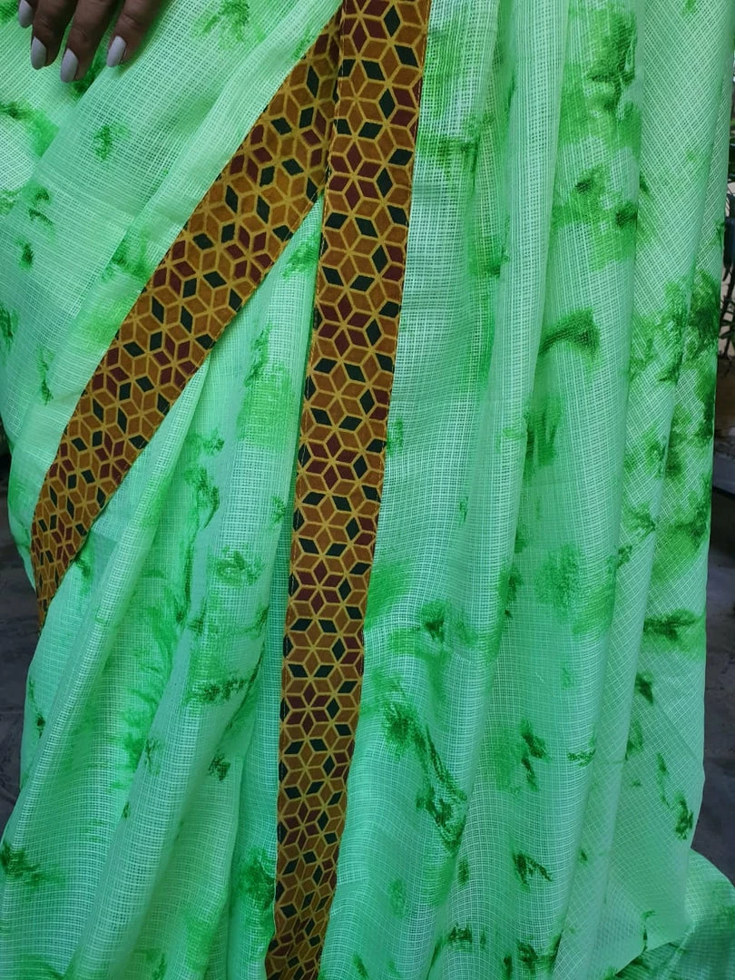 In this particular collection, we have given custom designed ajrakh patch work borders for silk kota sarees with vibrant colour burst pattern all over.