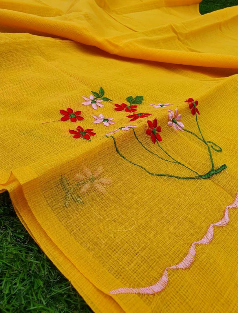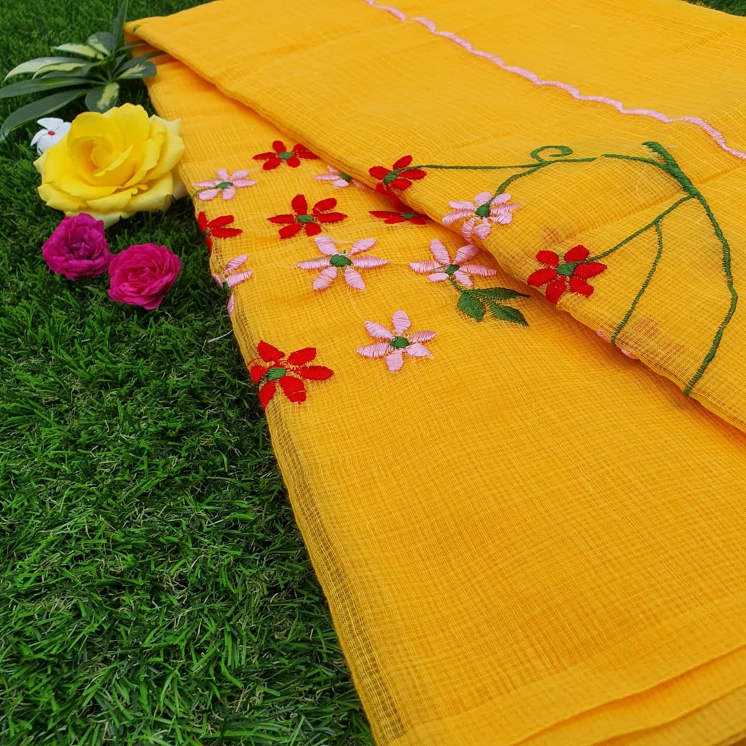 Type : Pure, cotton Kota sarees with embroidered floral motifs. Extremely lightweight and easy to drape.