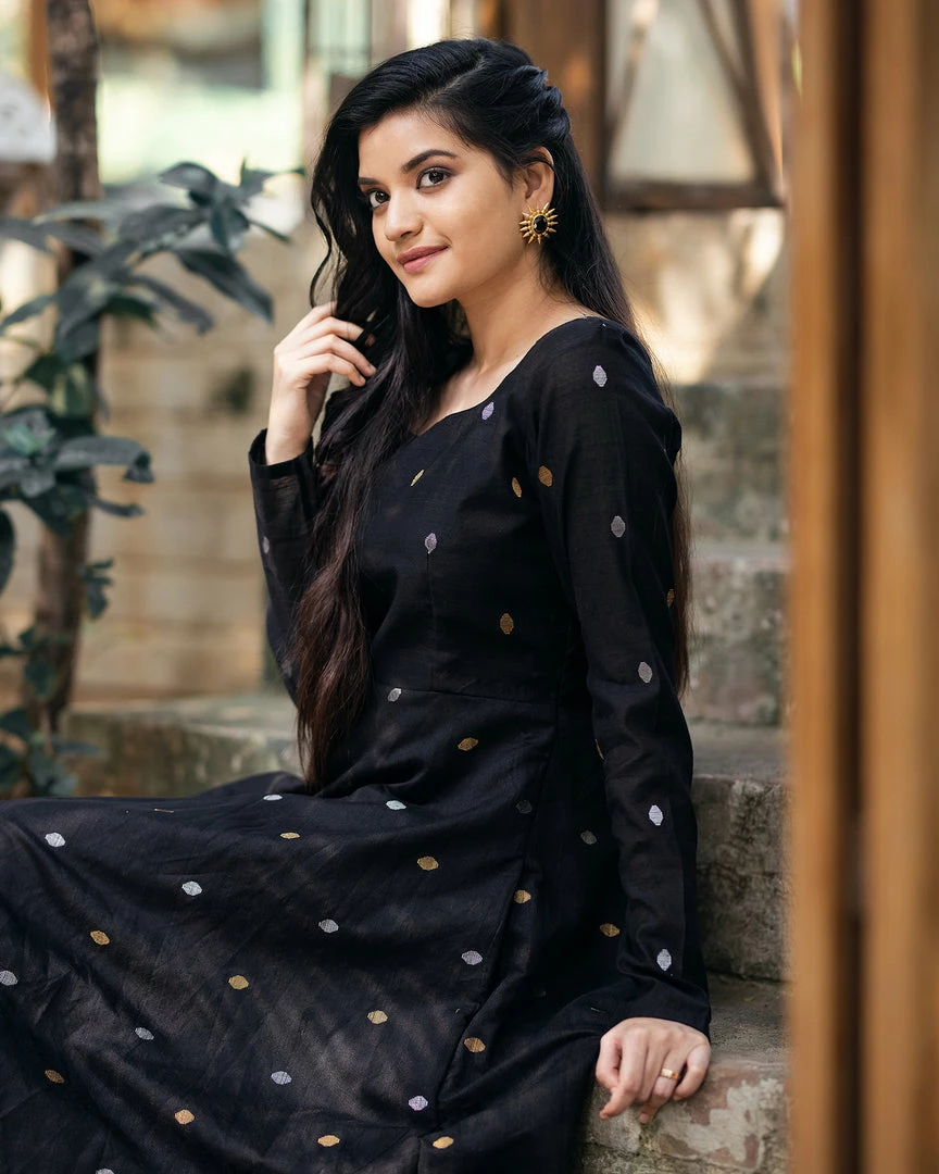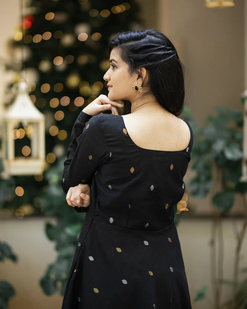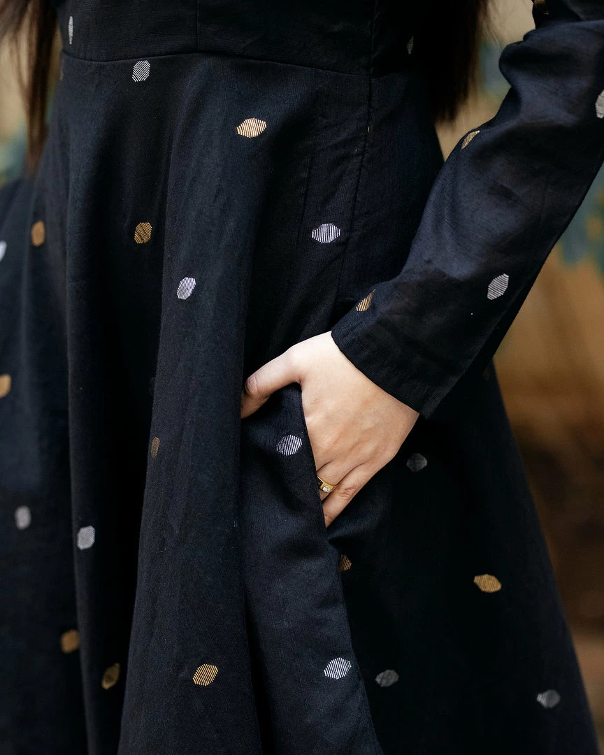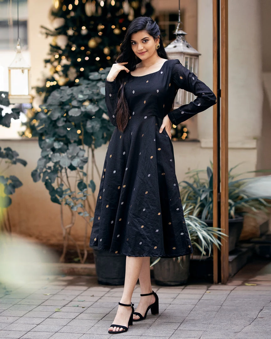 Dupion Cotton Zari Butti Fit and Flare Midi Dress.