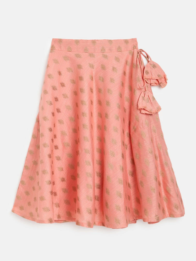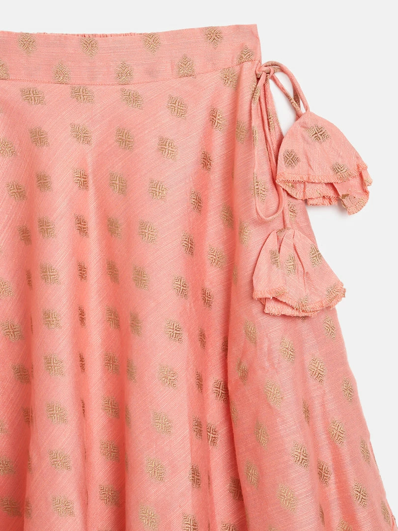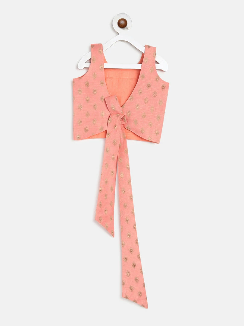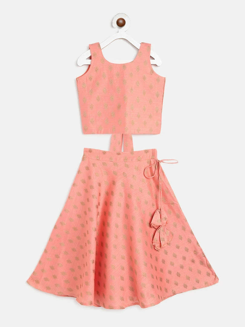 Peach Dupion Cotton Crop Top and Skirt.