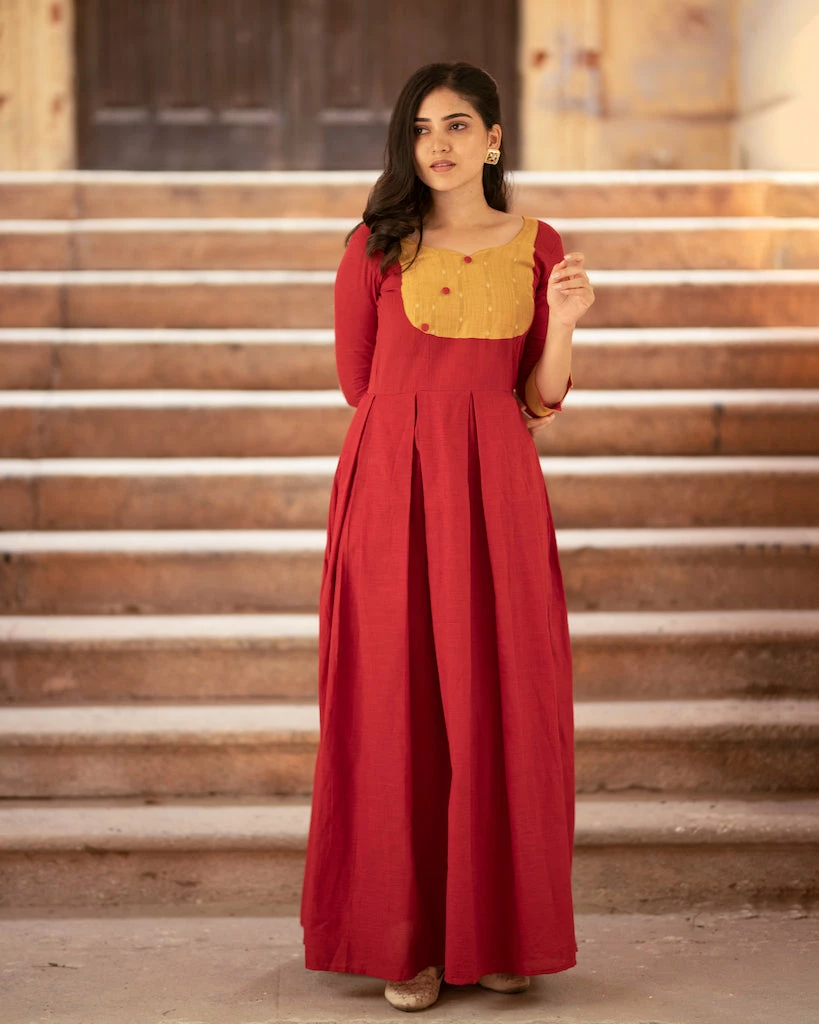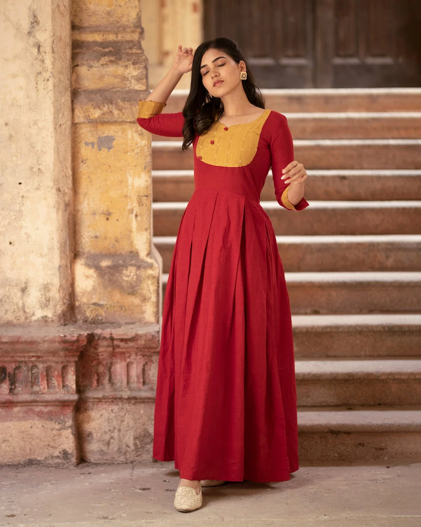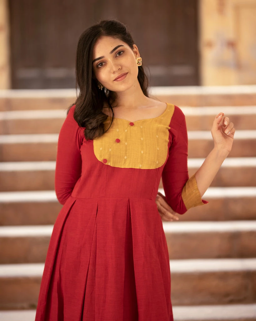 Cotton Fit and Flare Dress with yoke patch detailing.