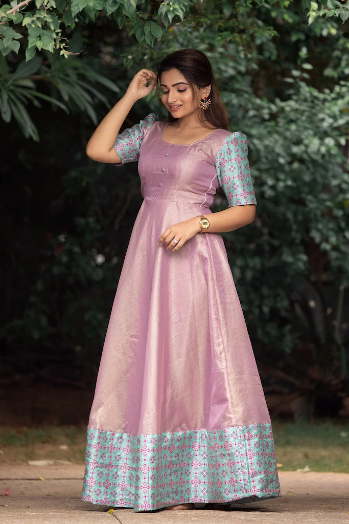 Kota Zari Checks Fit and Flare Dress with Banarasi Jacquard Detailing.