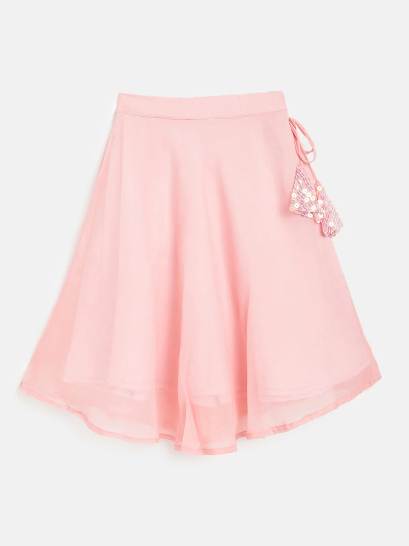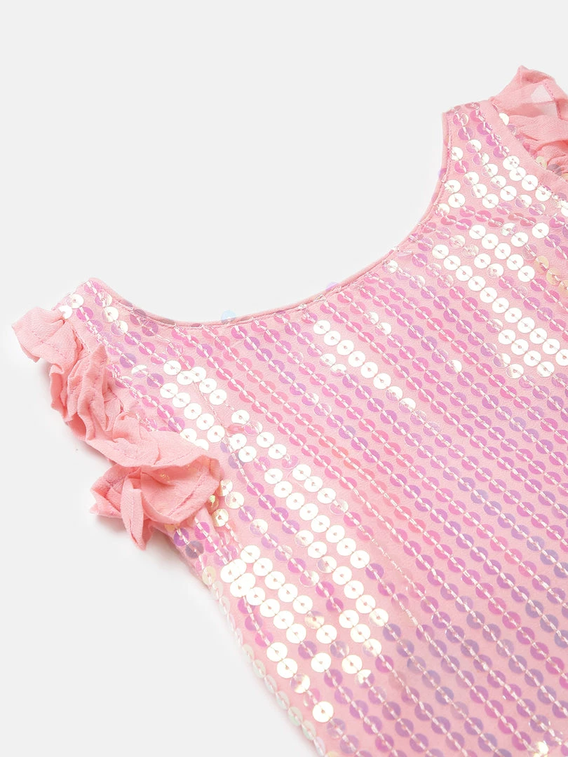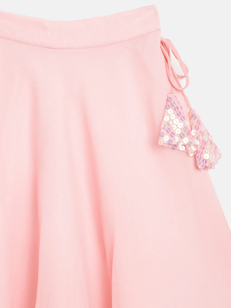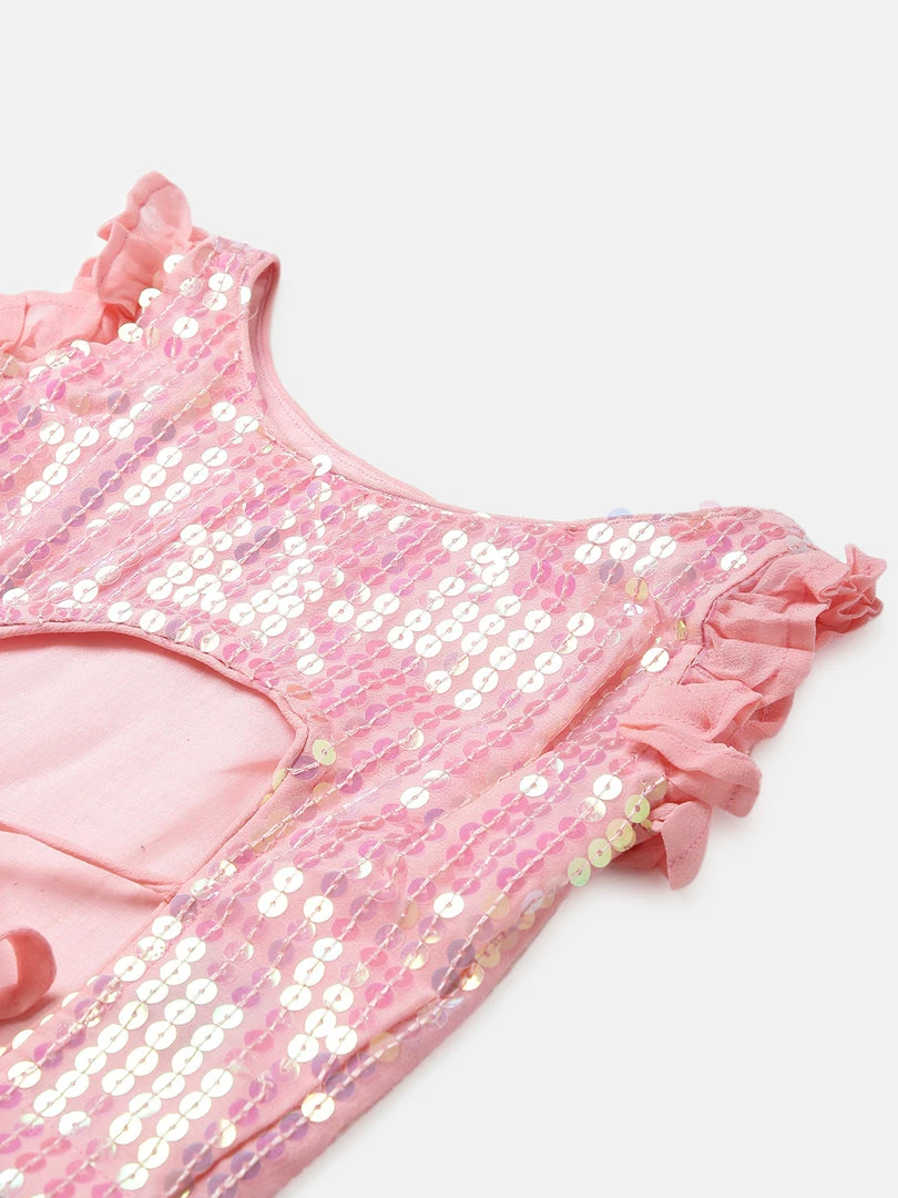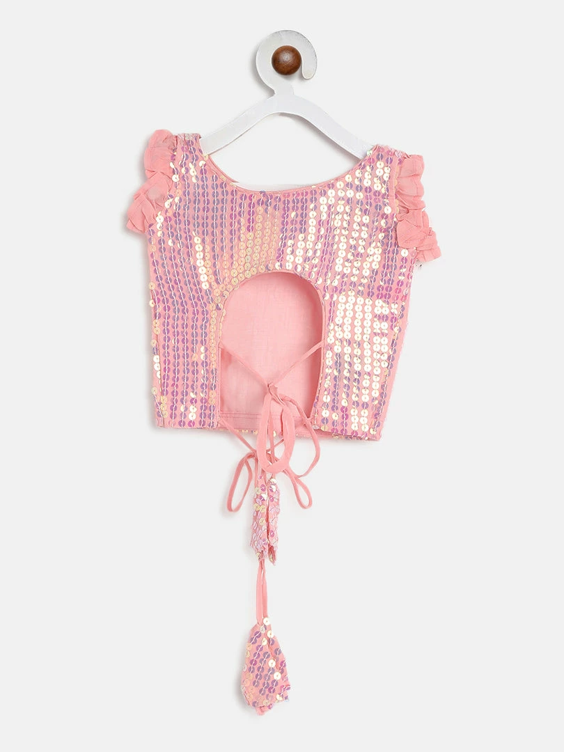 Pink Sequin Georgette Crop Top with Pink Georgette Skirt.