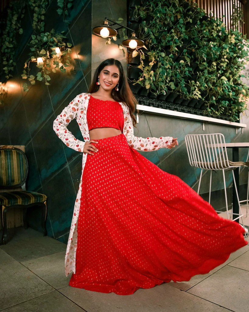 Foil Printed Rayon Crop top, Skirt and Jacket Set