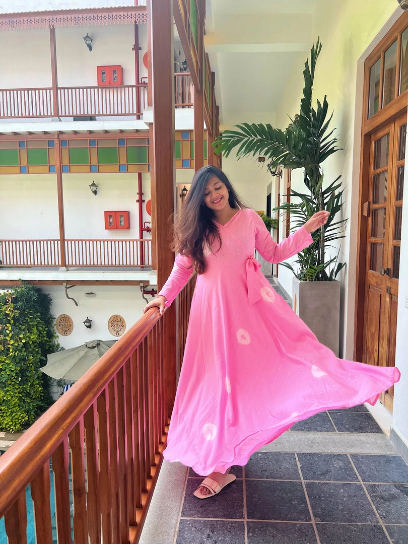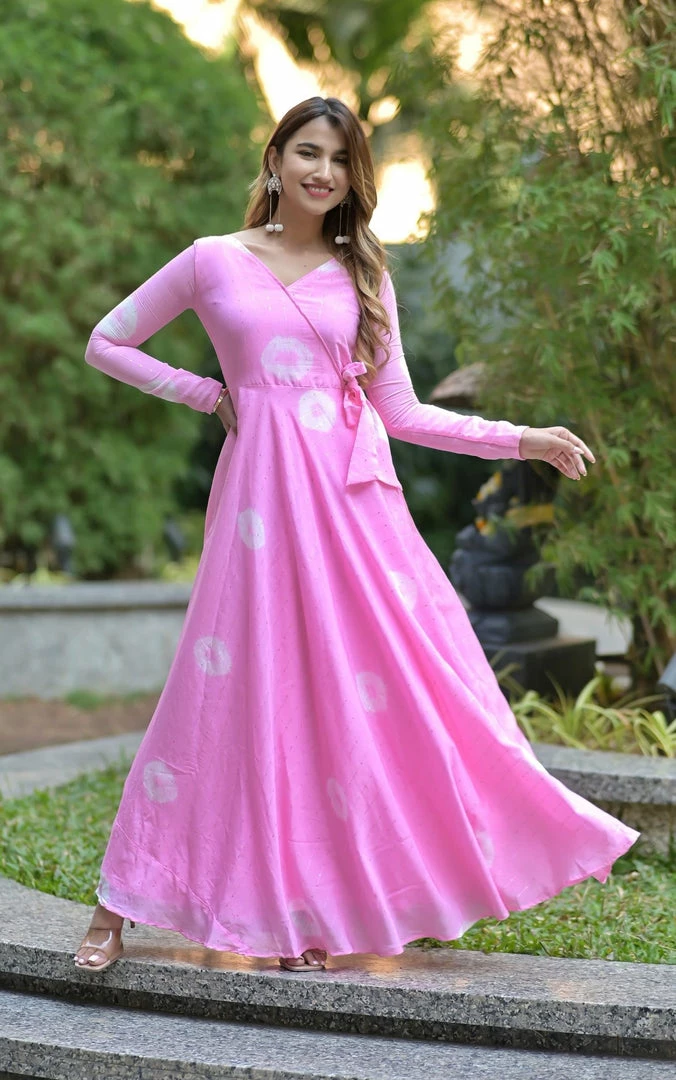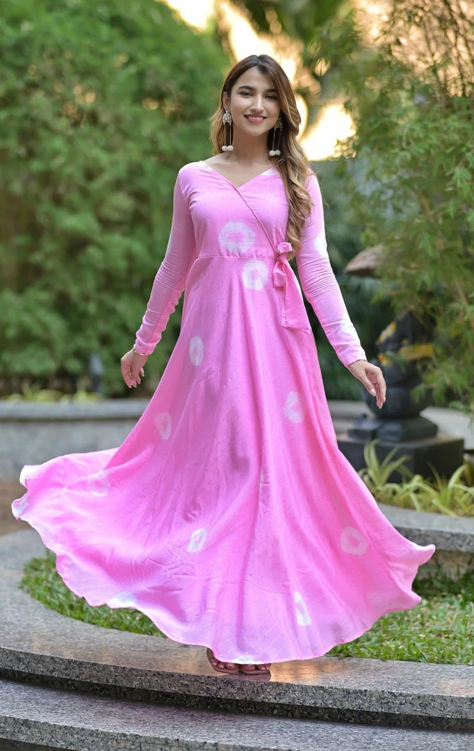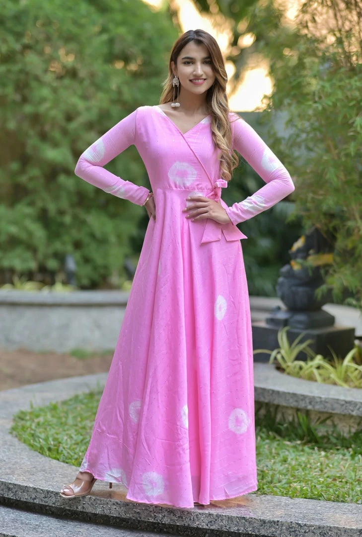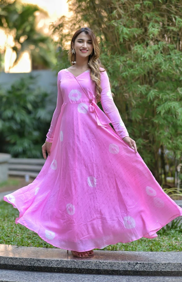 Tie and Dye print muslin embroidered with sequin fit and Flare Dress with Full Sleeves.