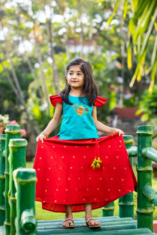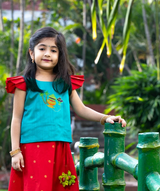 Harvest festival Special Edition. Check out the cute embroidery of Sugarcane , Mud pot and Kite.