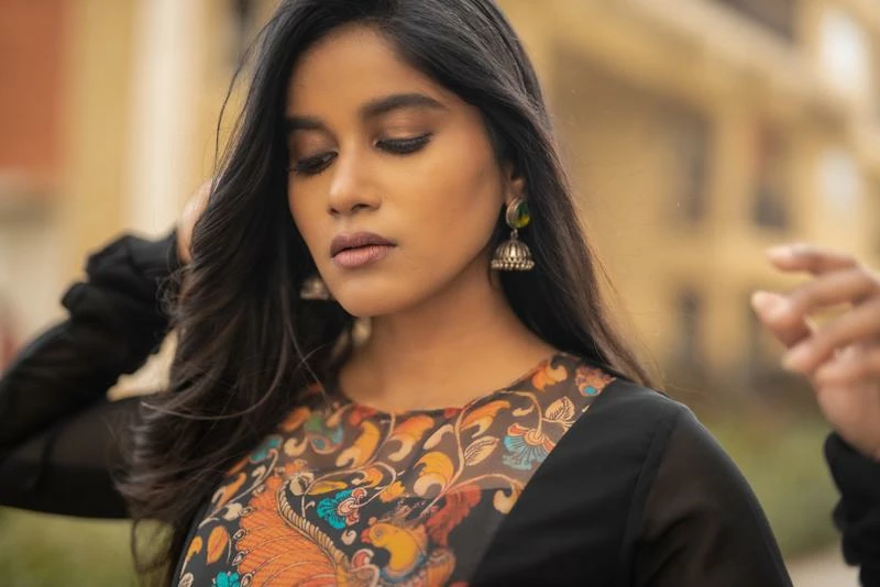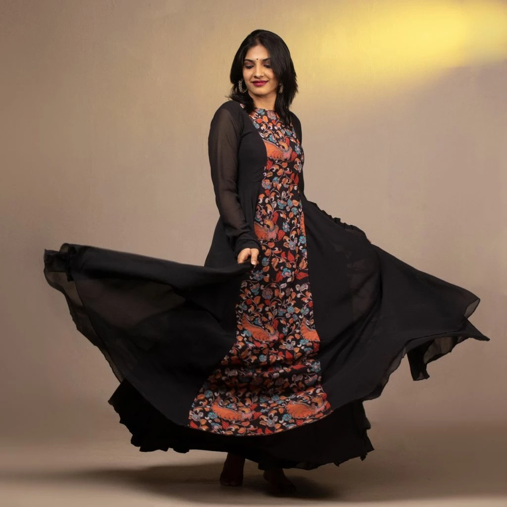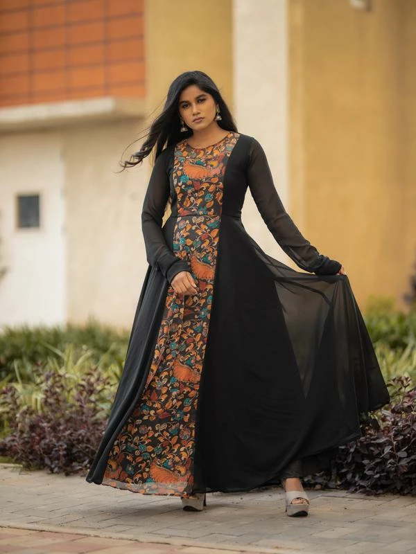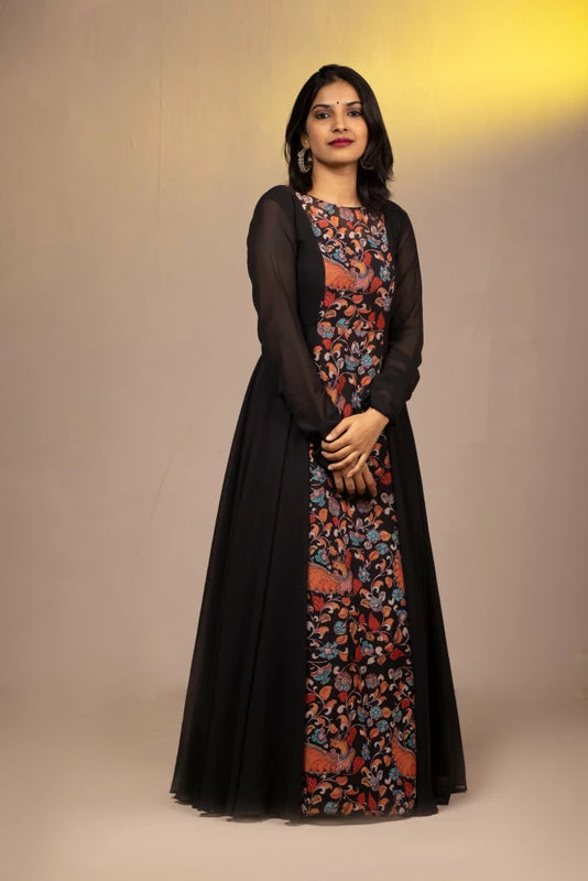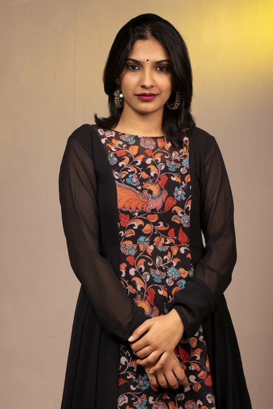 Detailing: Kalamkari Center front panel with semi transparent upper chest detailing
