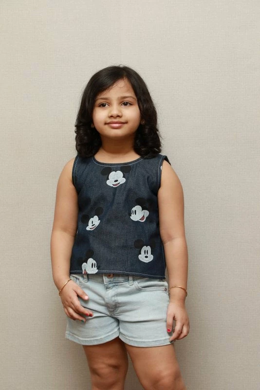 Playful Mickey printed denim crop top (only)for a sporty look for the junior.