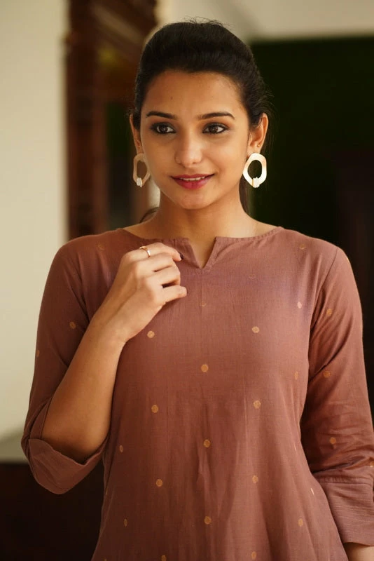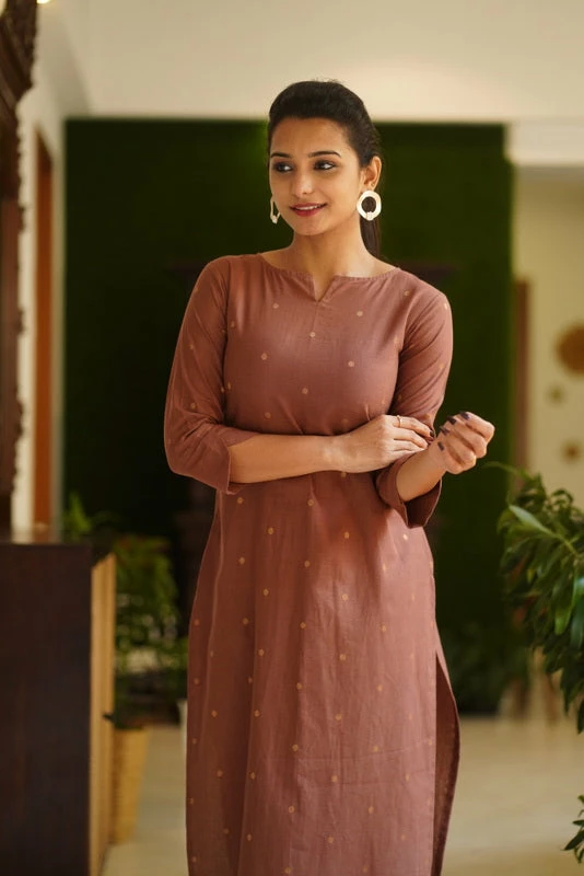 Kurti : Chocolate Brown (cotton) with Golden Bronze shade butta