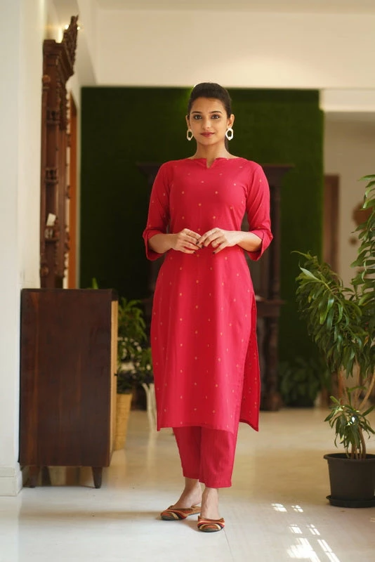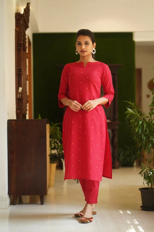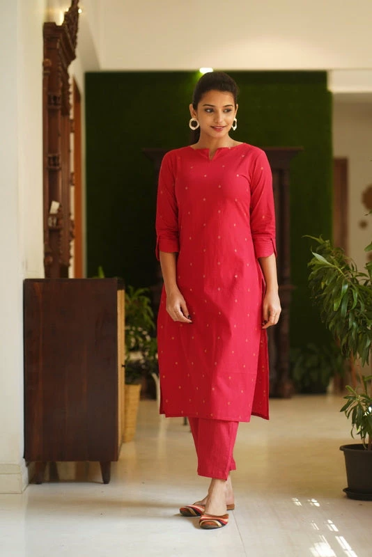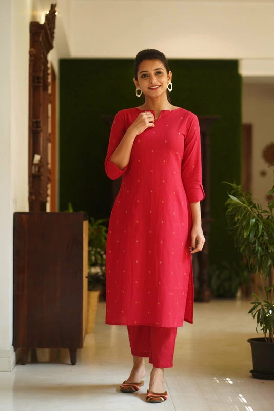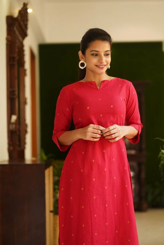 Kurti : Red (cotton) with Golden Bronze shade butta