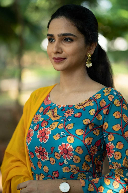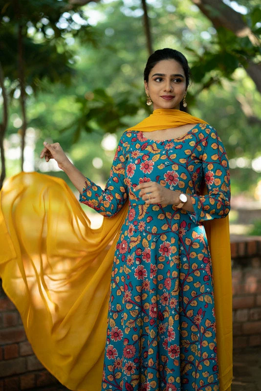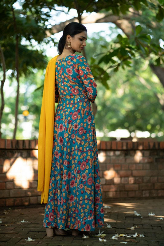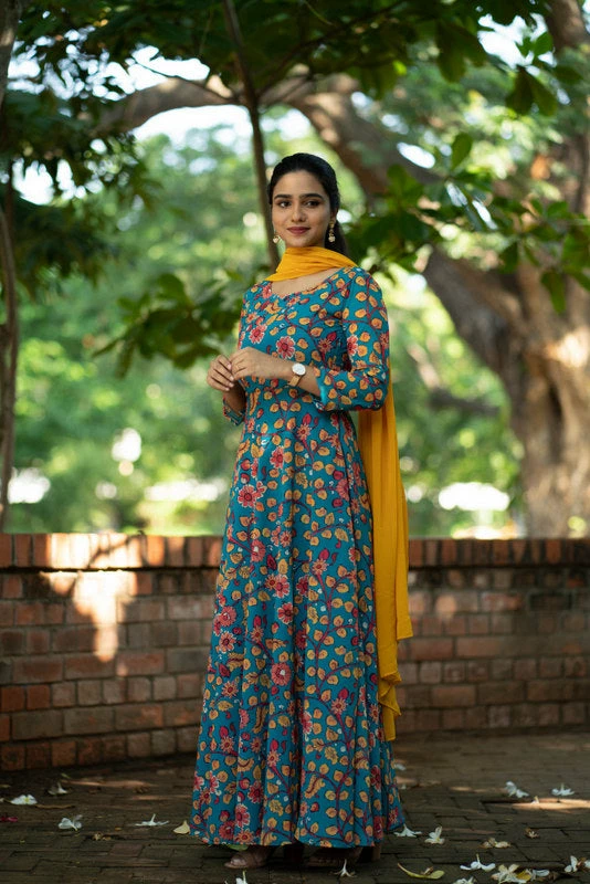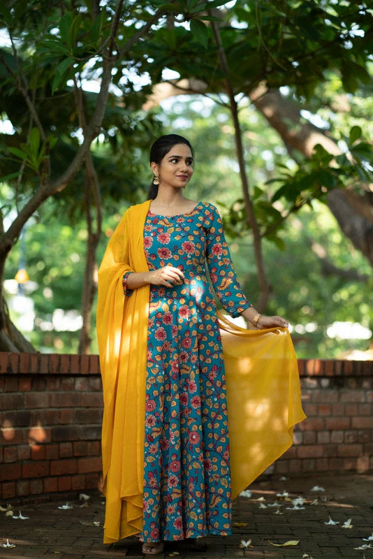 Floral Georgette Fit & Flare maxi paired with plain georgette dupatta (2.5mtr).