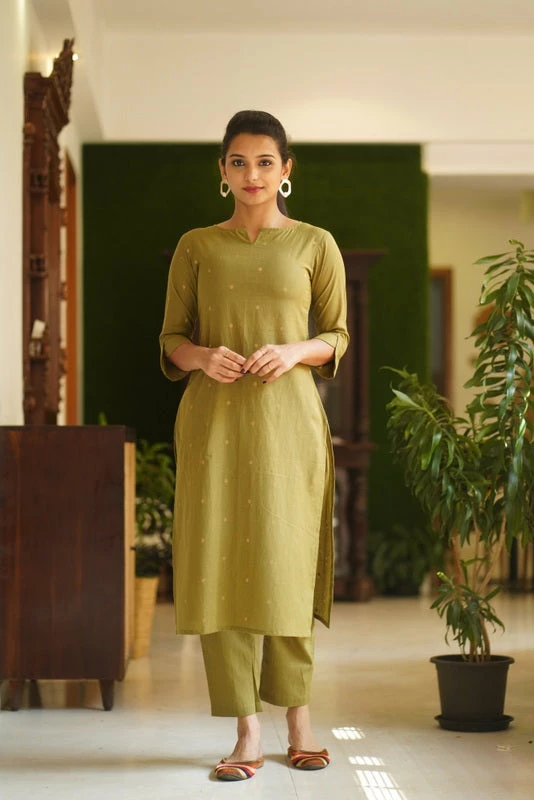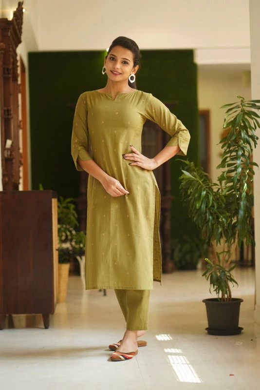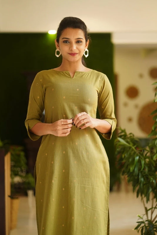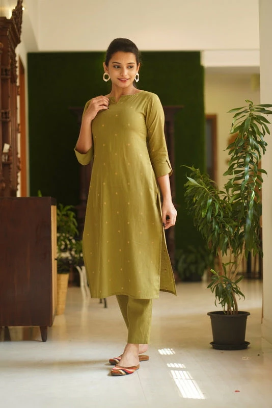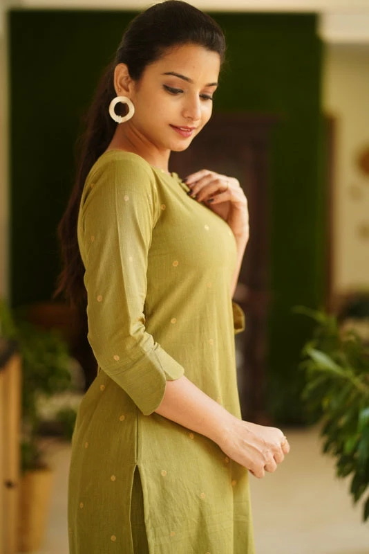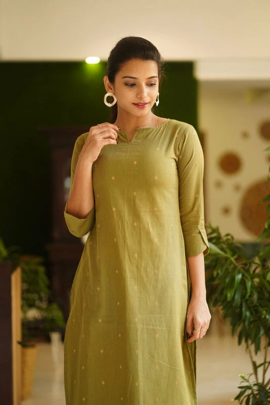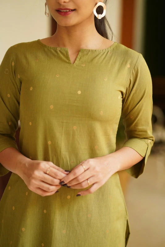 Kurti : Olive Green (cotton) with Golden Bronze shade butta