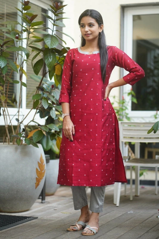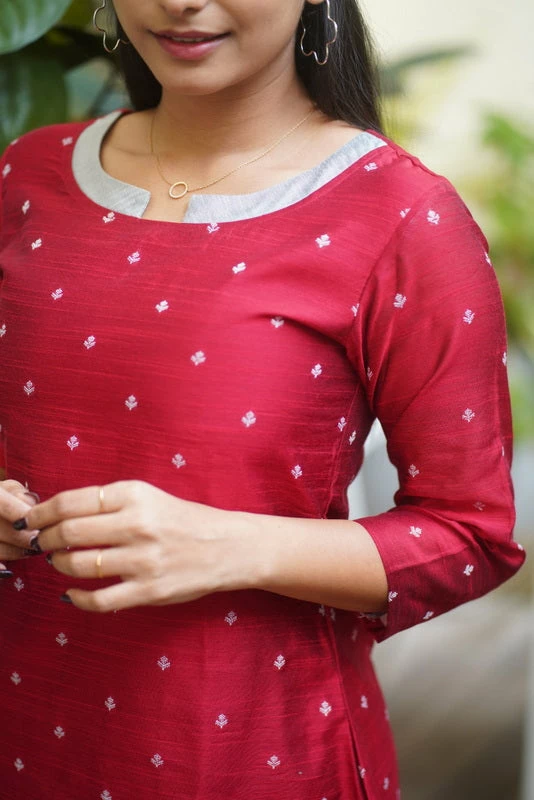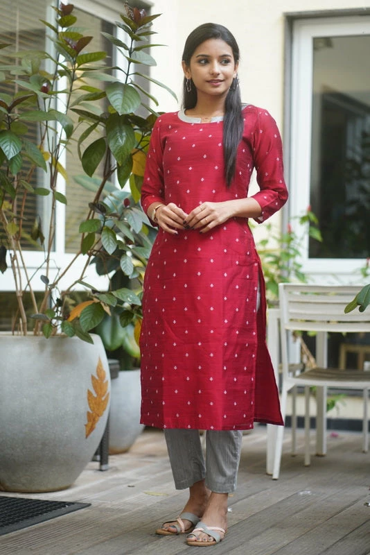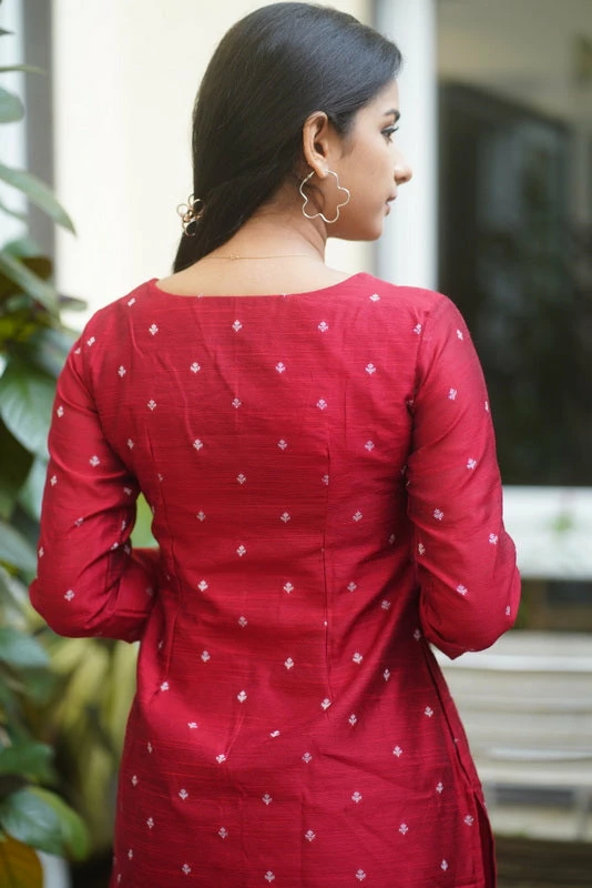 Dupion with Jacquard weave Kurti paired with Straight Pants.