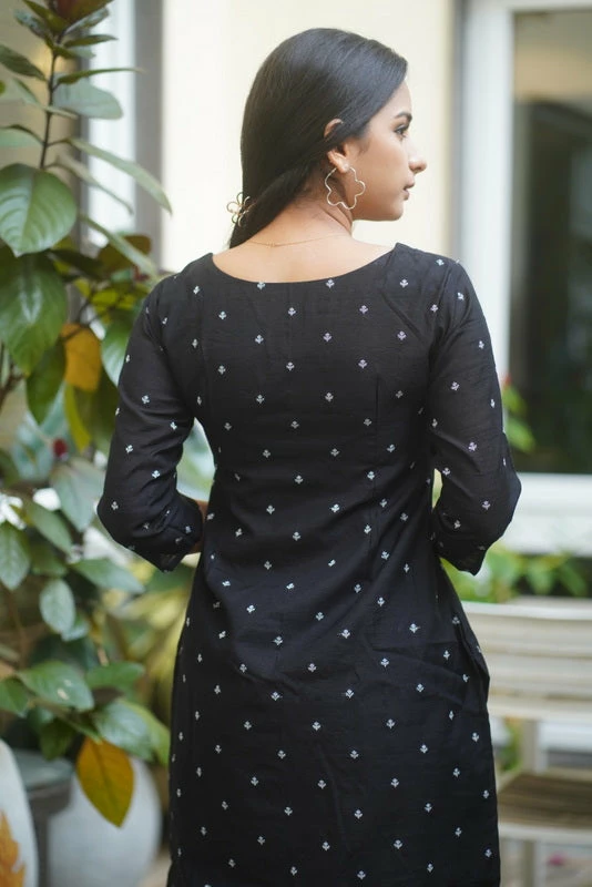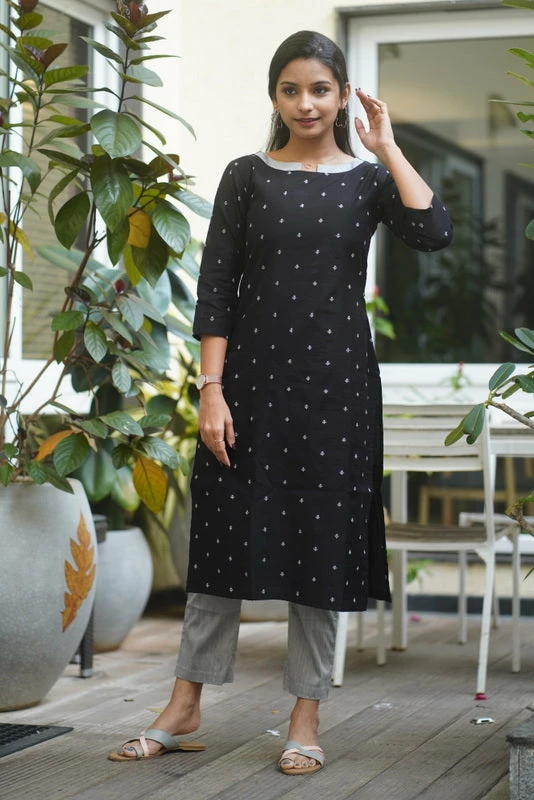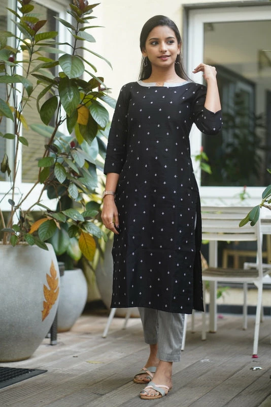Dupion with Jacquard weave Kurti paired with Straight Pants.Â