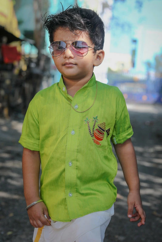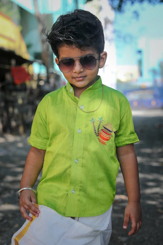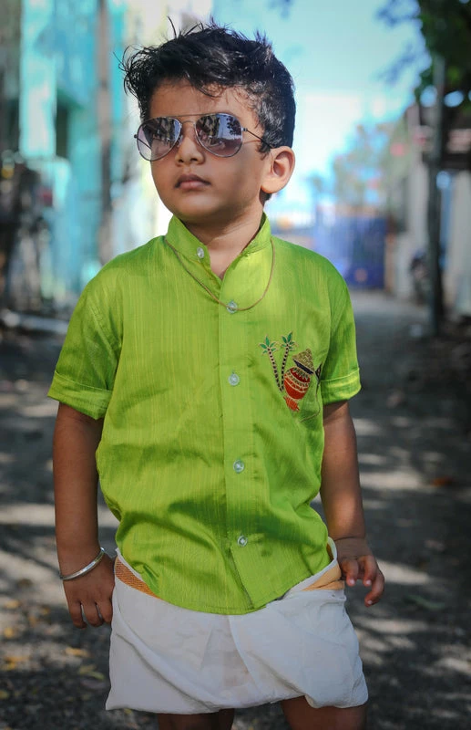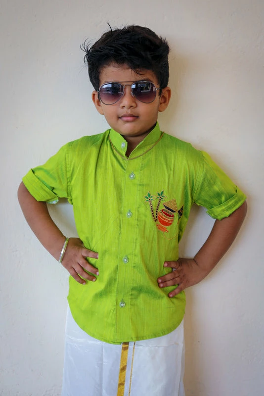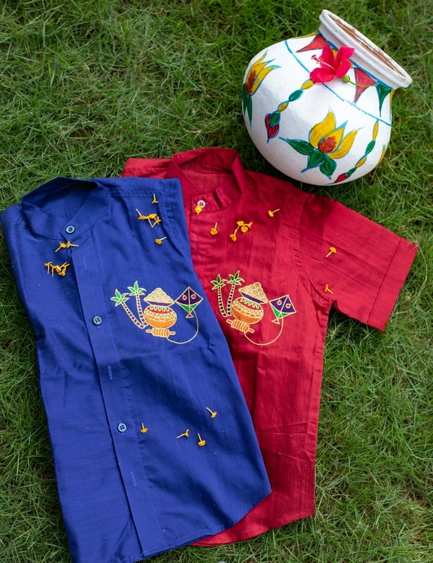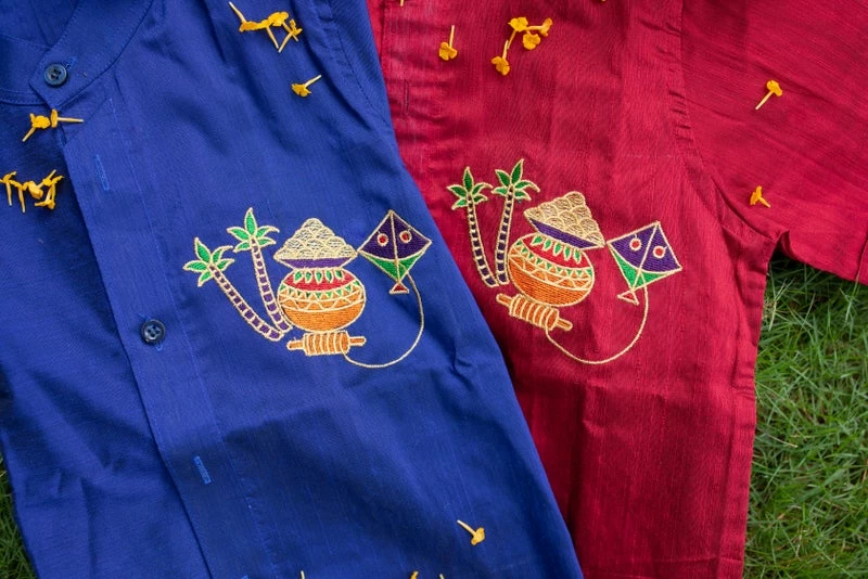 Harvest festival Special Edition. Check out the cute embroidery of Sugarcane , Mud pot and Kite.