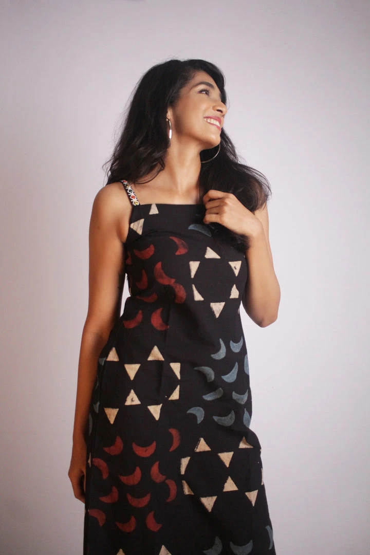 slip dress which comes with an embroidered strap and a side slit which makes it look more attractive . Style this piece for work or for a casual occasion by layering it with a light jacket or a scarf and team it with a classy flats and make it a perfect look for the day.