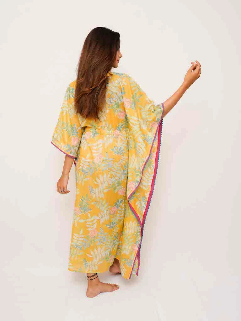 The kaftans are specifically designed as a leisure wear. The material of the kaftan is thin and luminous. This gives it its lightweight luxurious comfort.