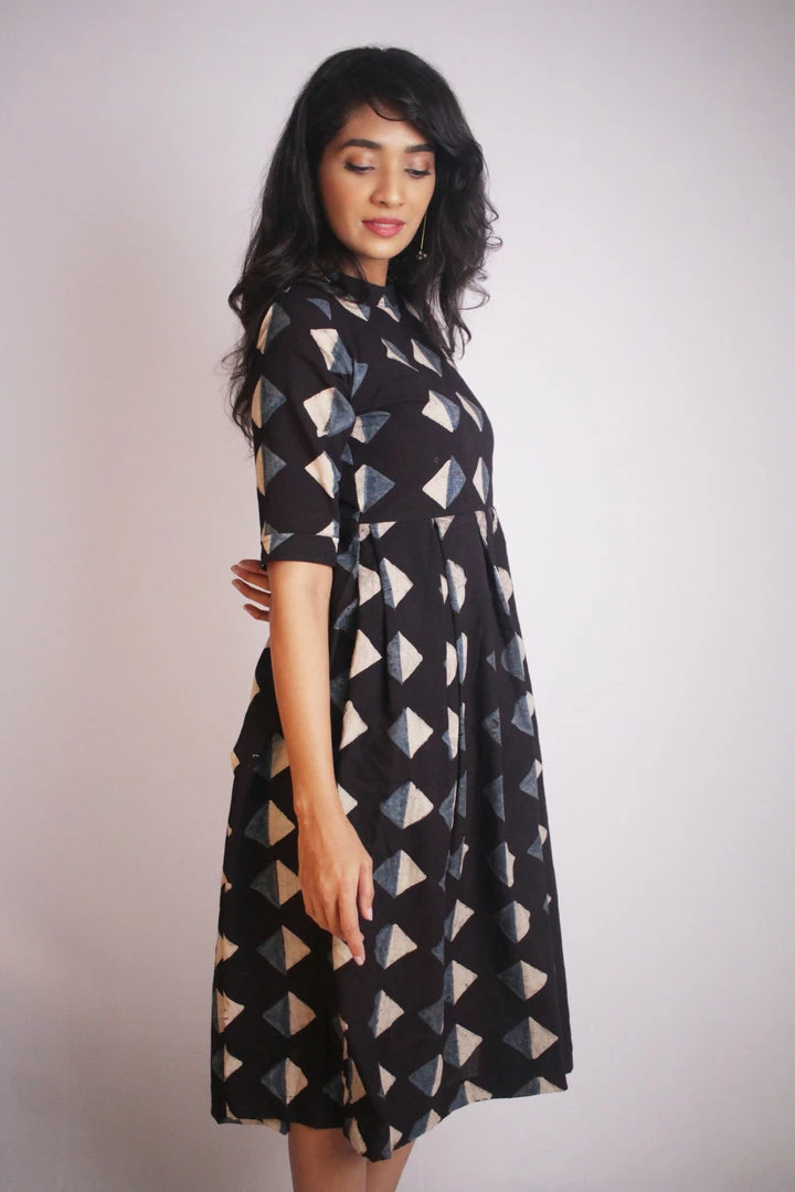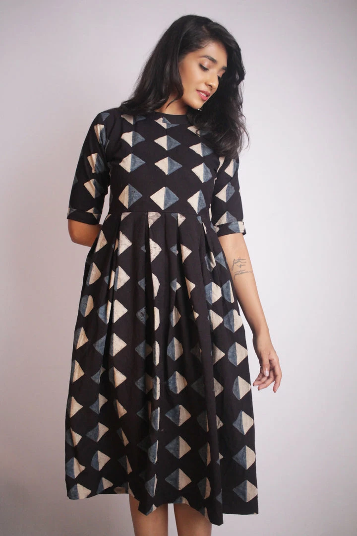 Look absolutely flamboyant with this super chic pleated dress. Curated with excellent quality cotton fabric, it provides a great comfort and comes with an mandarian collar and gives an eye catching style statement.