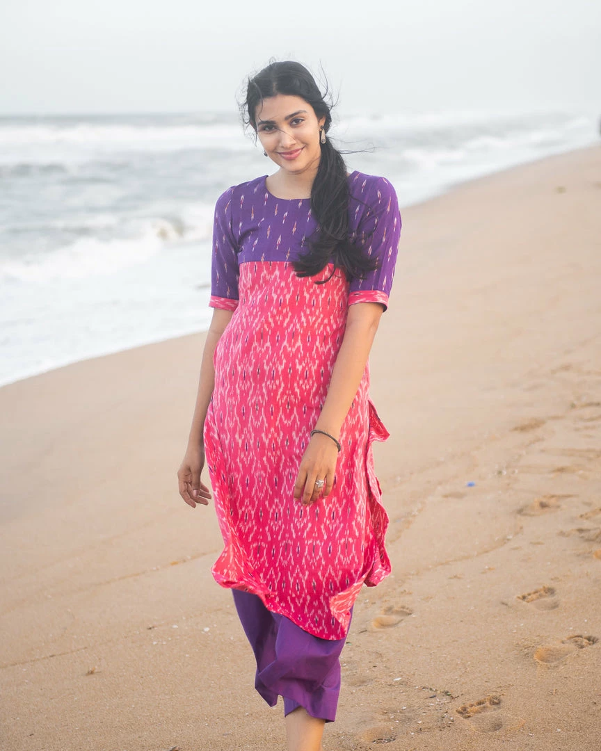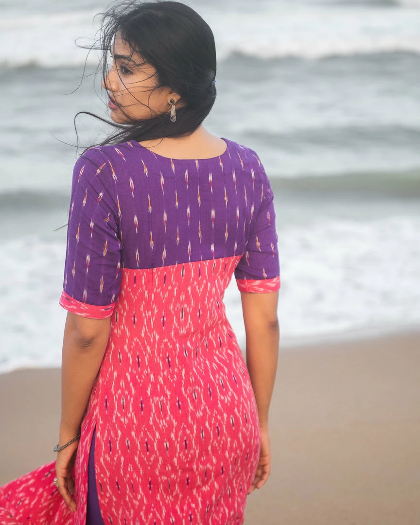 This pink Ikat kurta is bright and comfortable with a touch of purple Ikat for the extra zing.