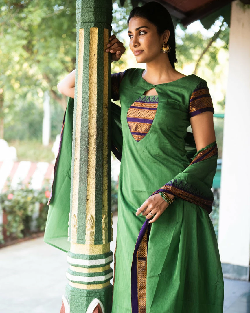 This festive co-ord with dupatta is twist to the yesteryear saree combination – a nostalgia to cherish, a heritage to preserve and a beauty to look at!