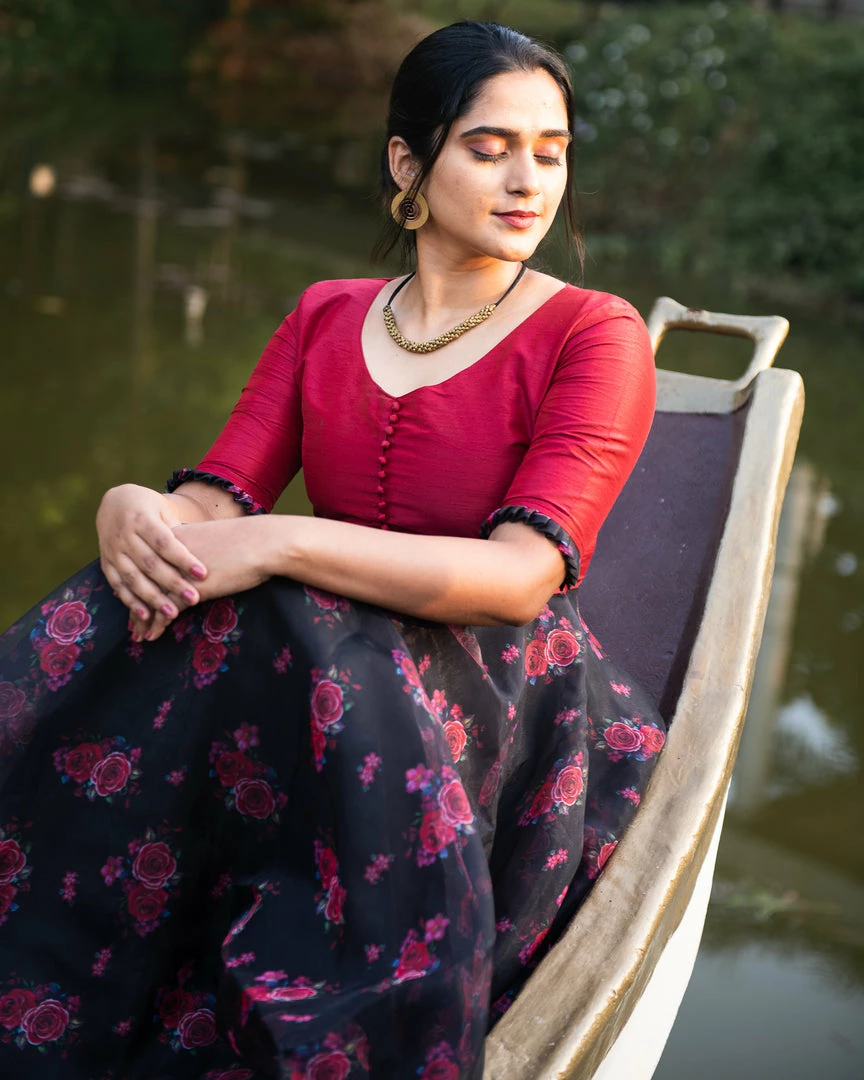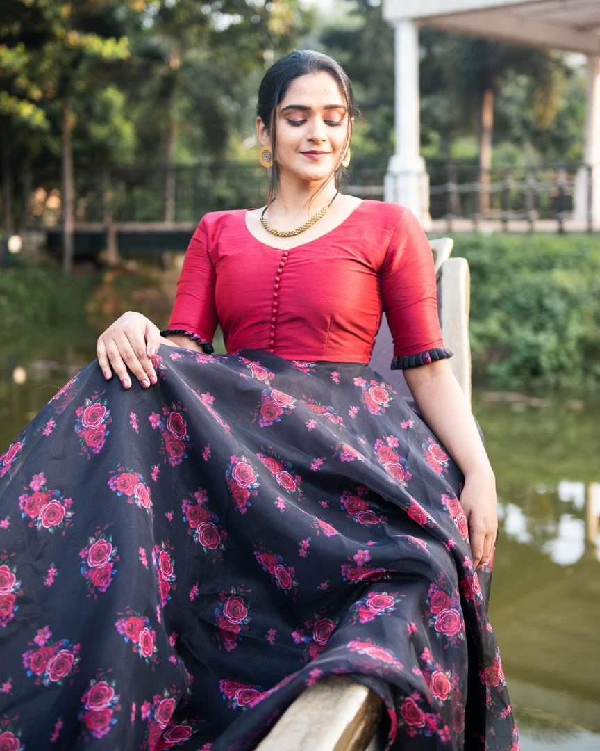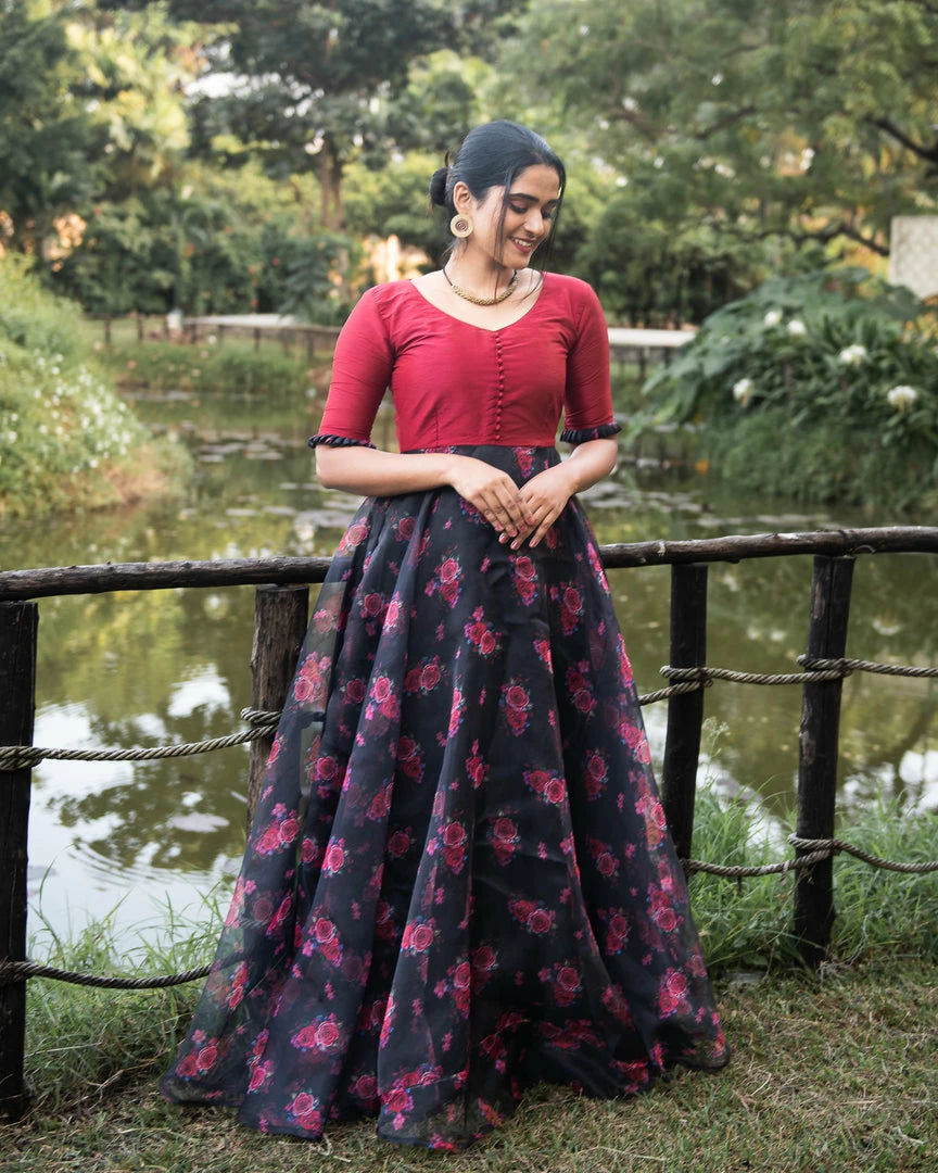 Avant-garde and bold – red and black can never go wrong. Strong and chic, this red organza dress is a must have to make heads turn!