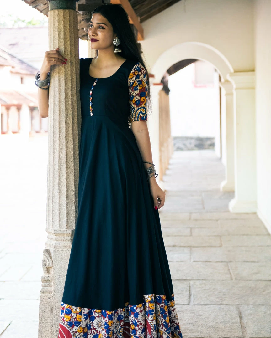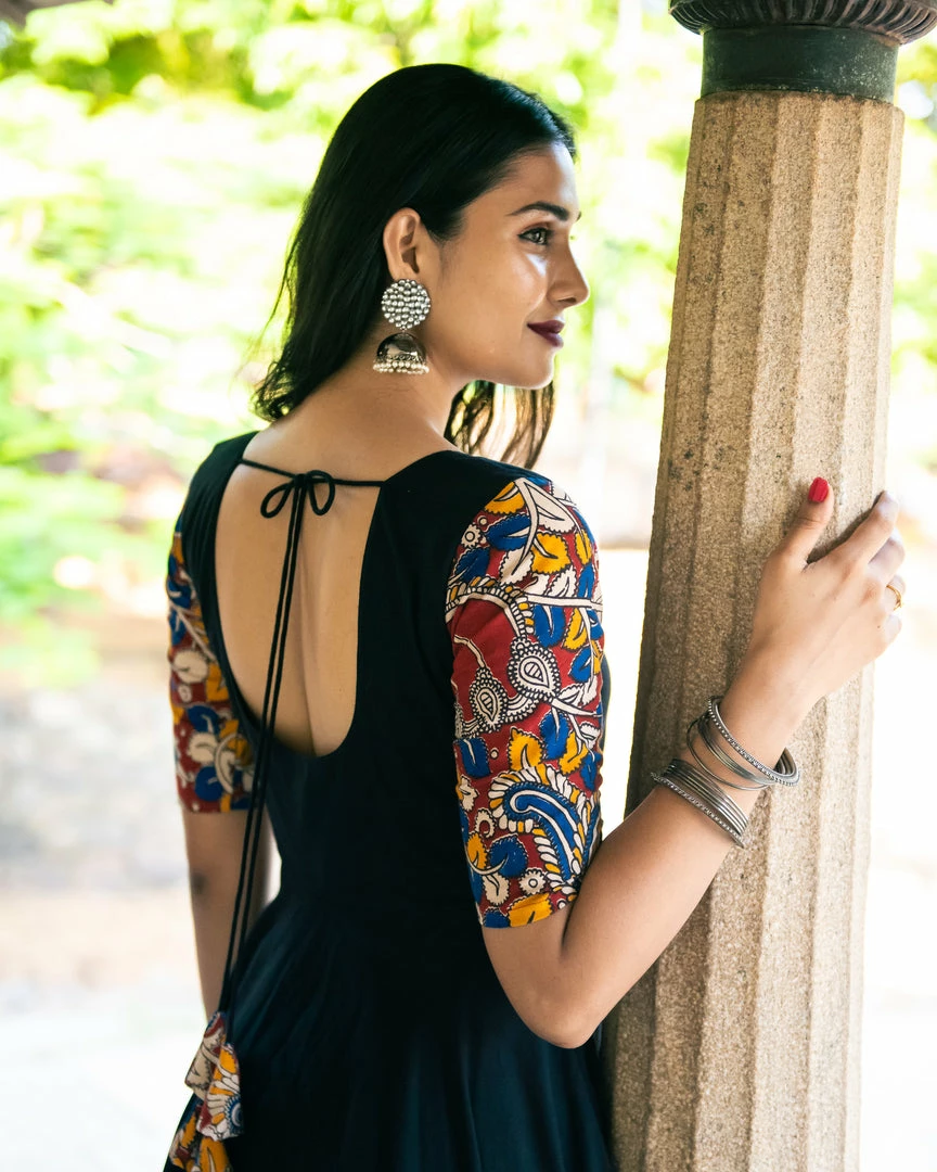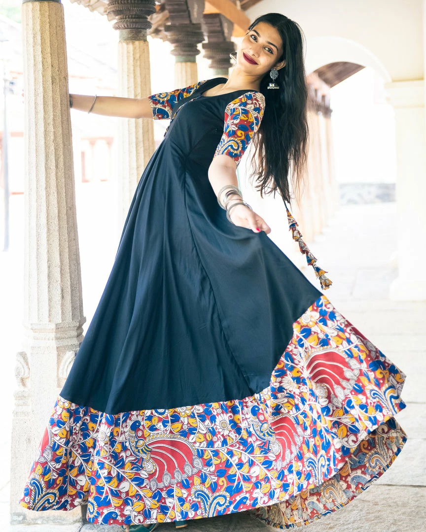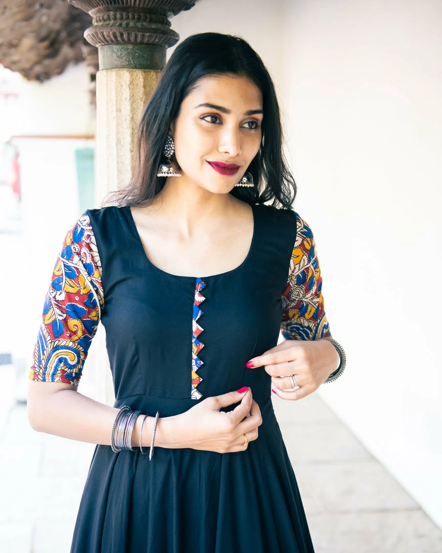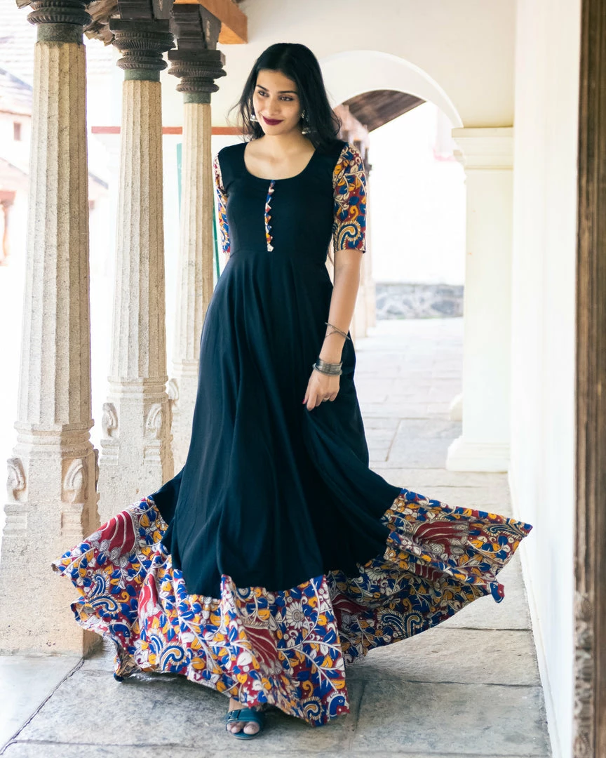 A rayon black anarkali with our favourite Kalamkari – a beauty indeed!